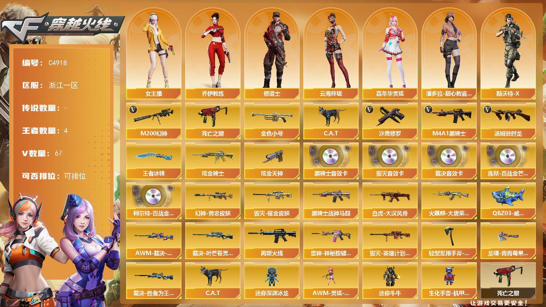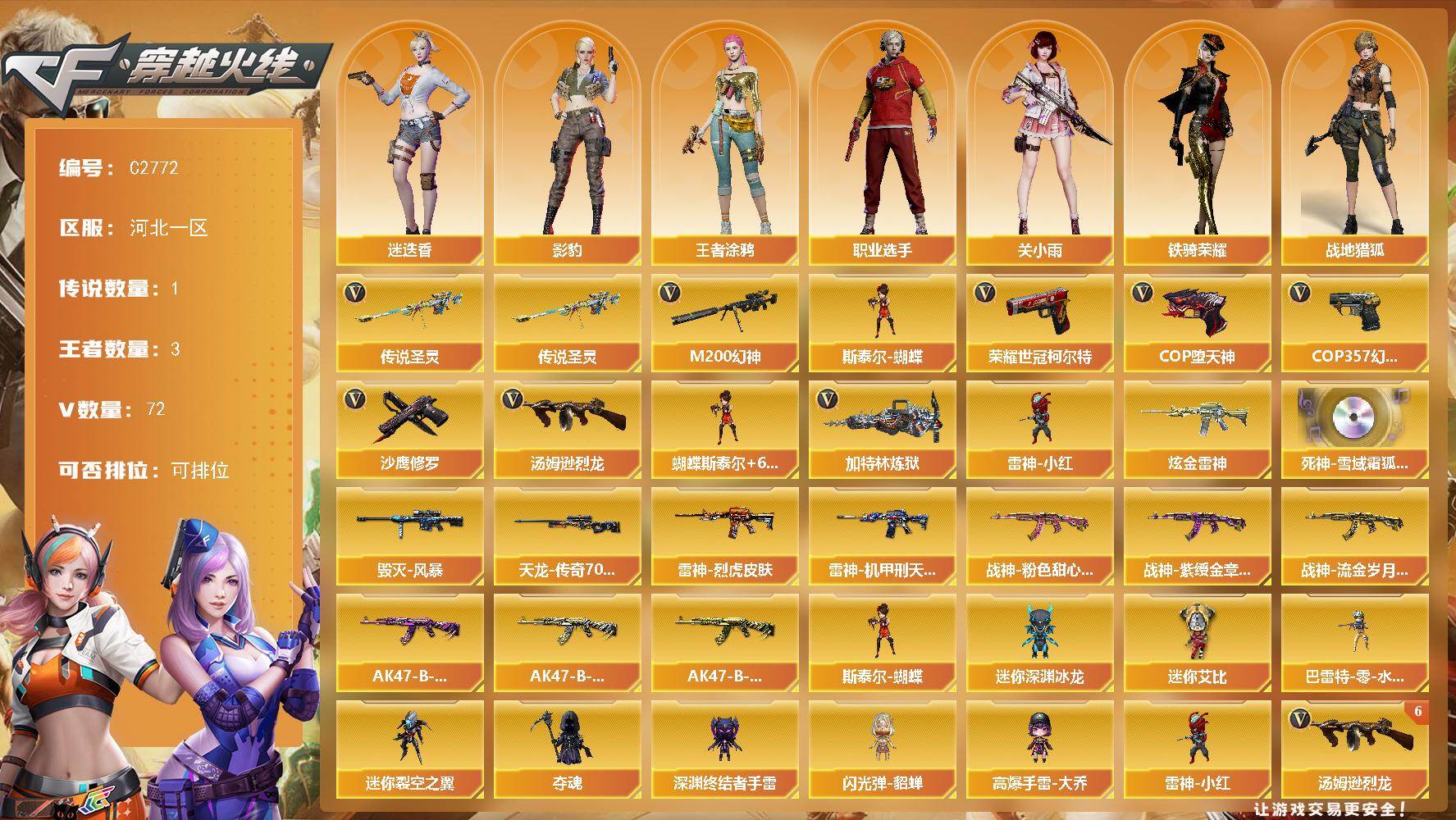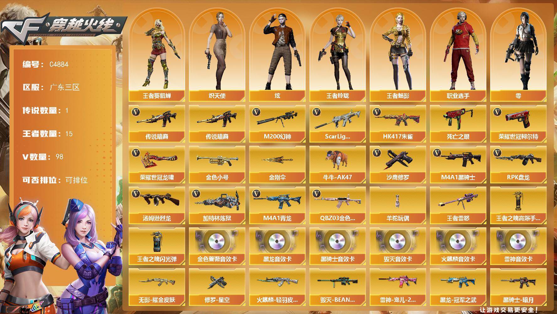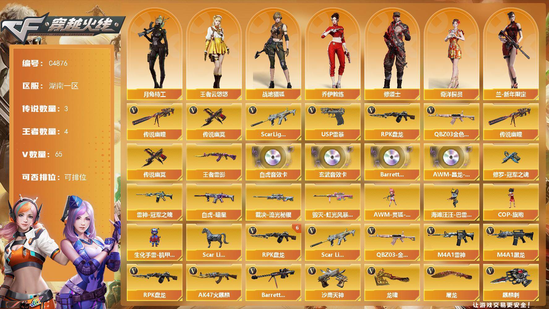 湖南一区-69V-4王者武器数-0炫金武器数