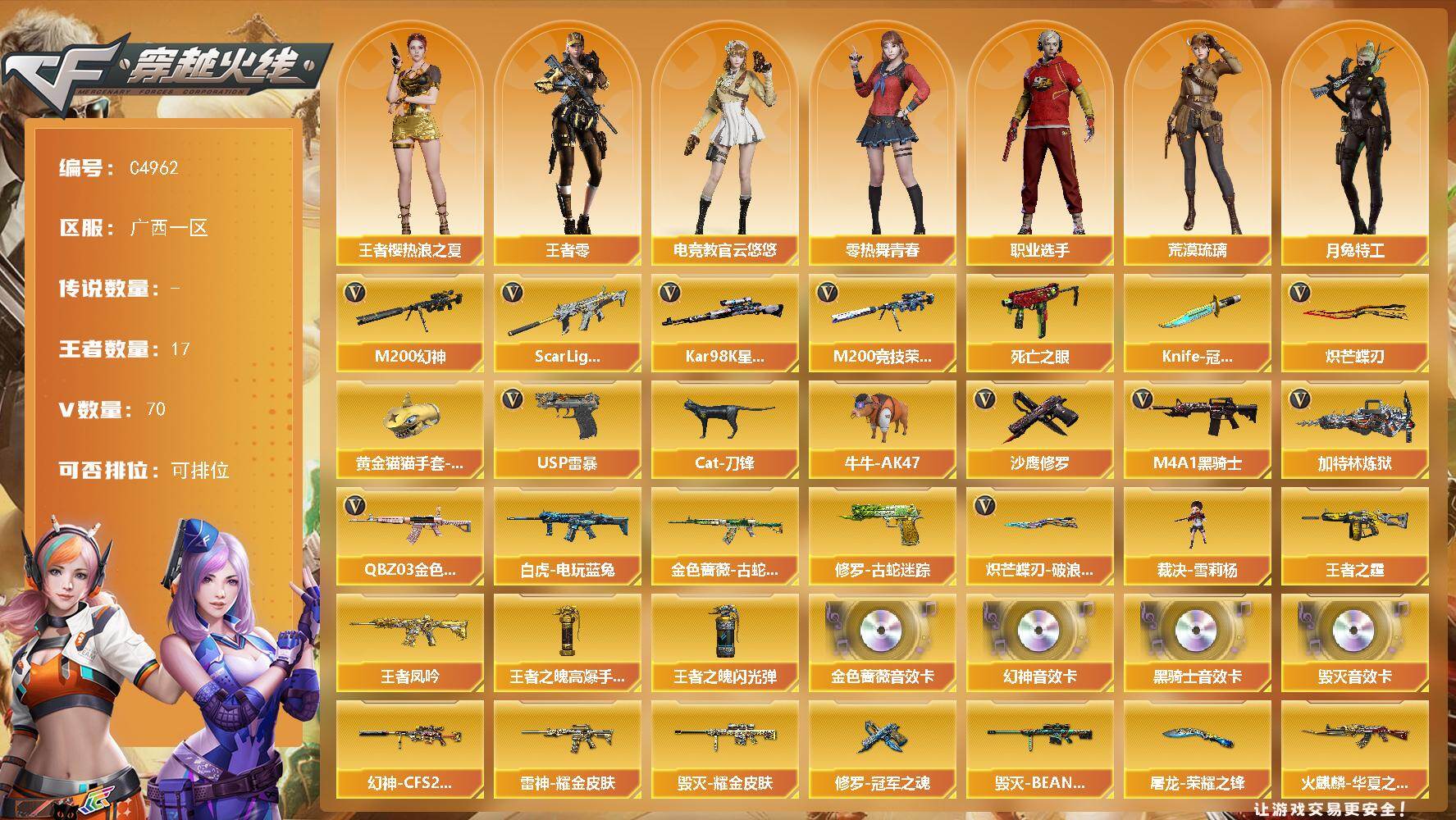 广西一区-75V-17王者武器数-0炫金武器数
