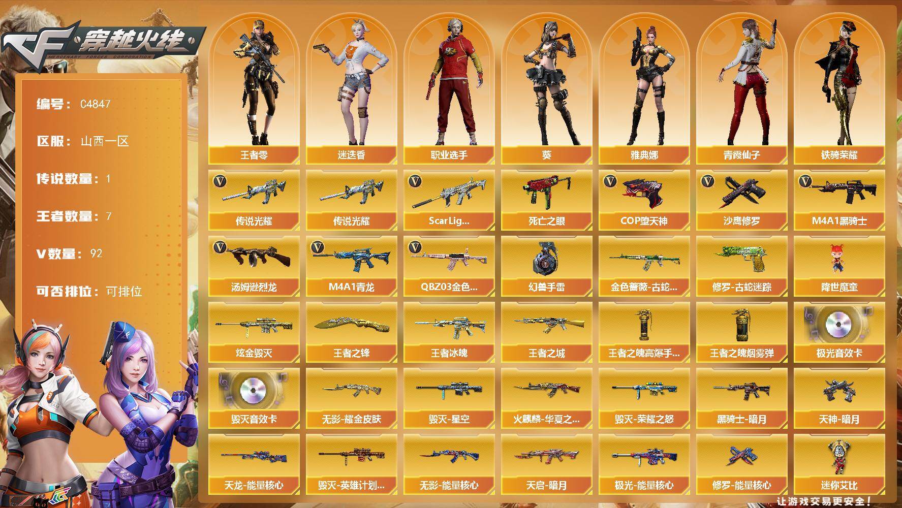 山西一区-93V-7王者武器数-1炫金武器数