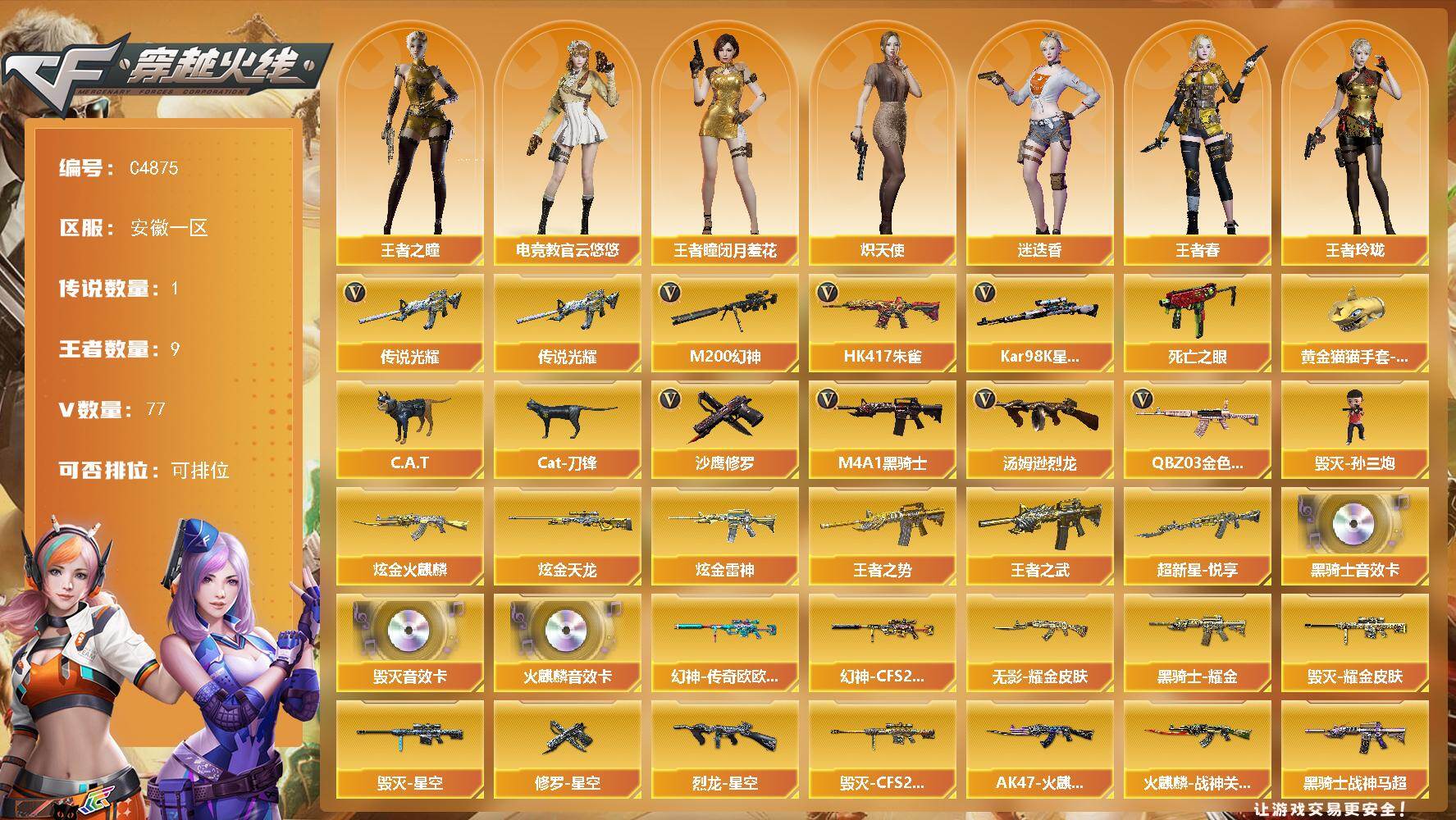 安徽一区-82V-9王者武器数-3炫金武器数
