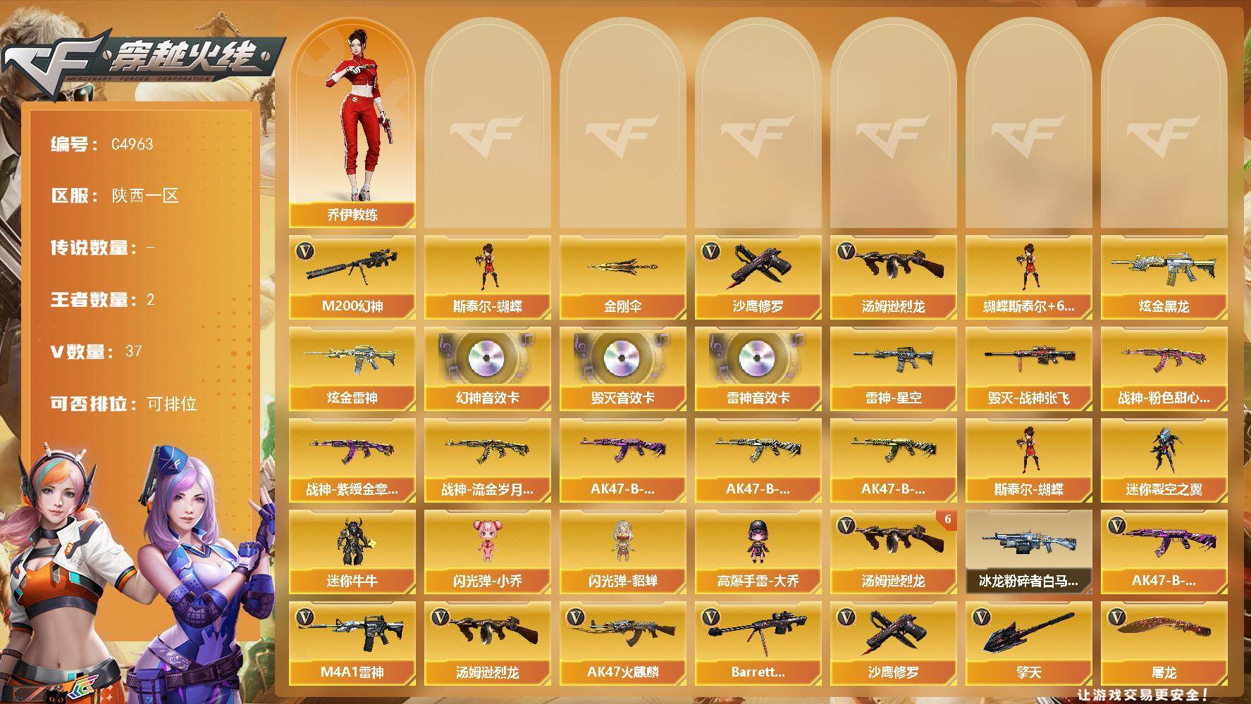陕西一区-40V-2王者武器数-2炫金武器数