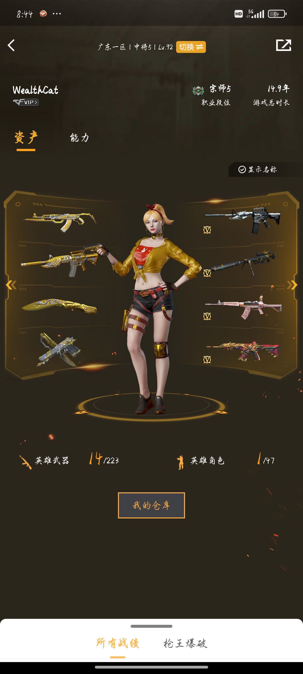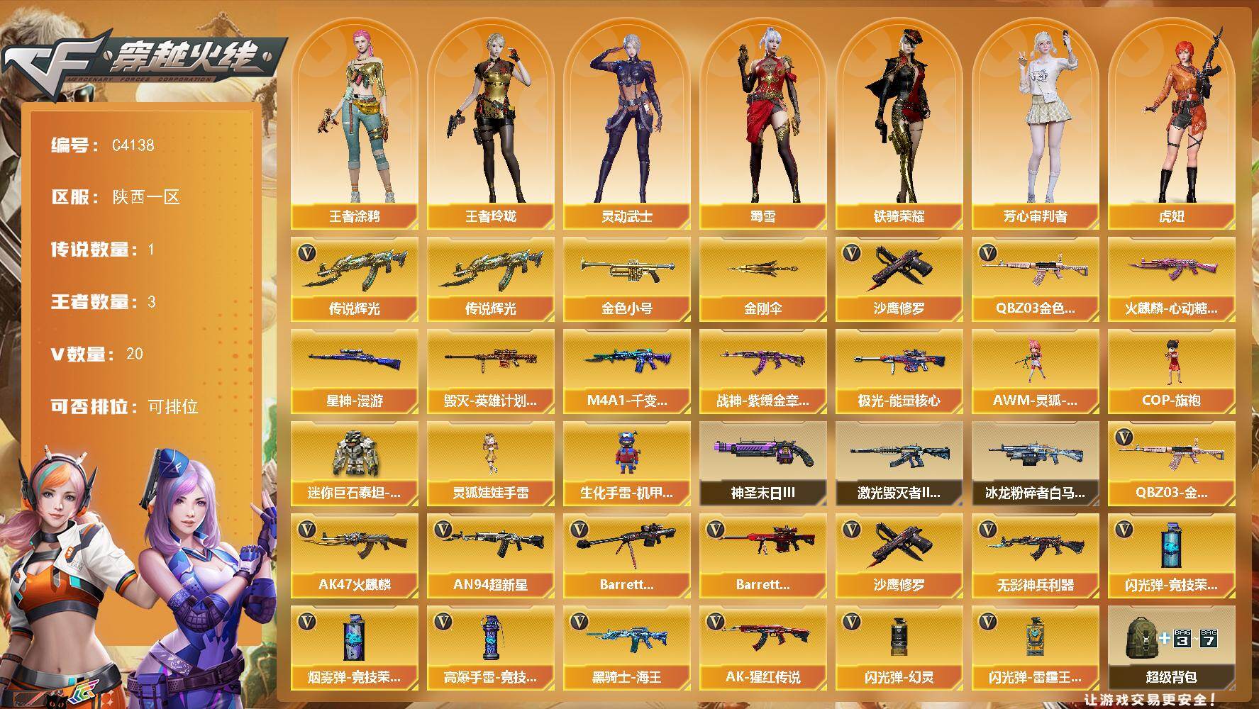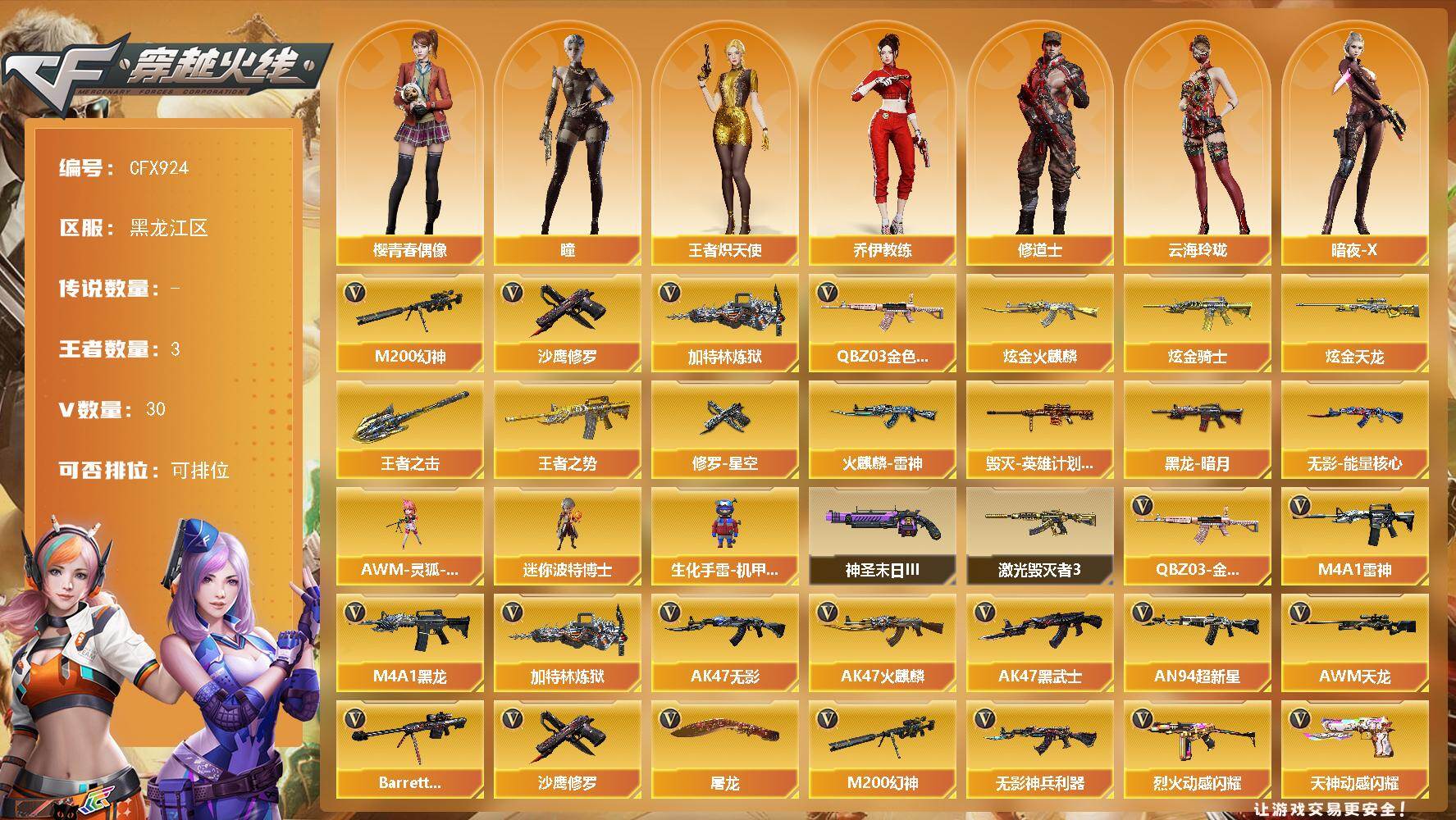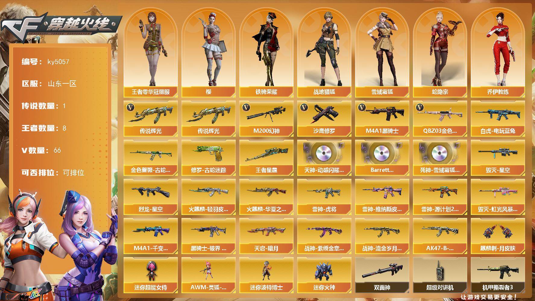 辽宁一区-53V-2王者-1炫金【热门武器】:QBZ03-金色蔷薇,M200