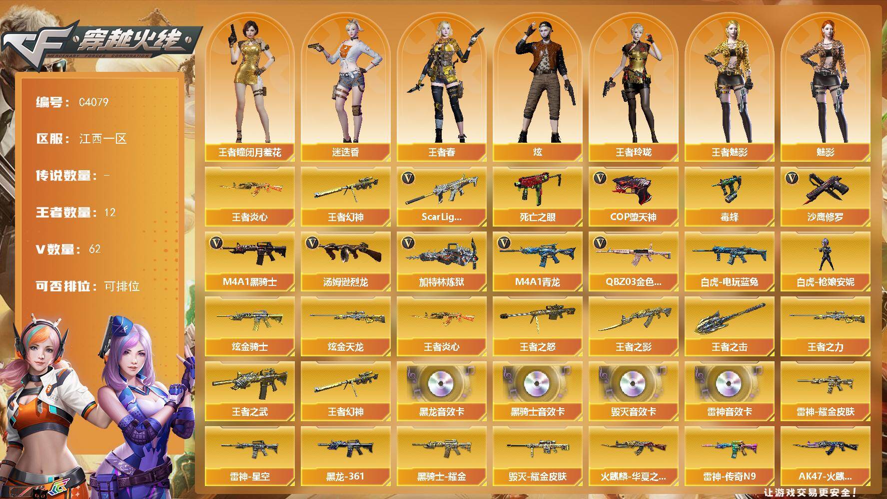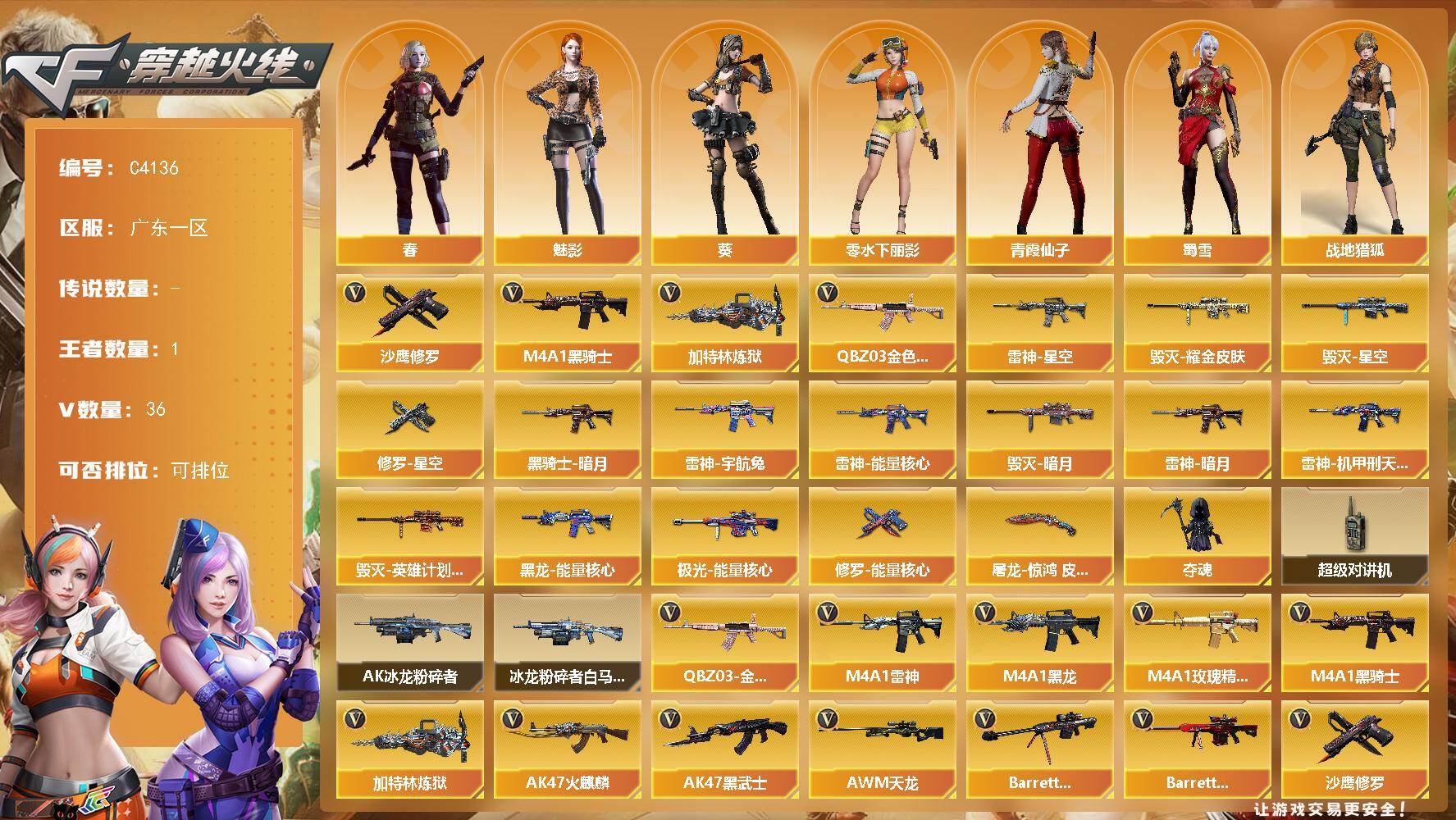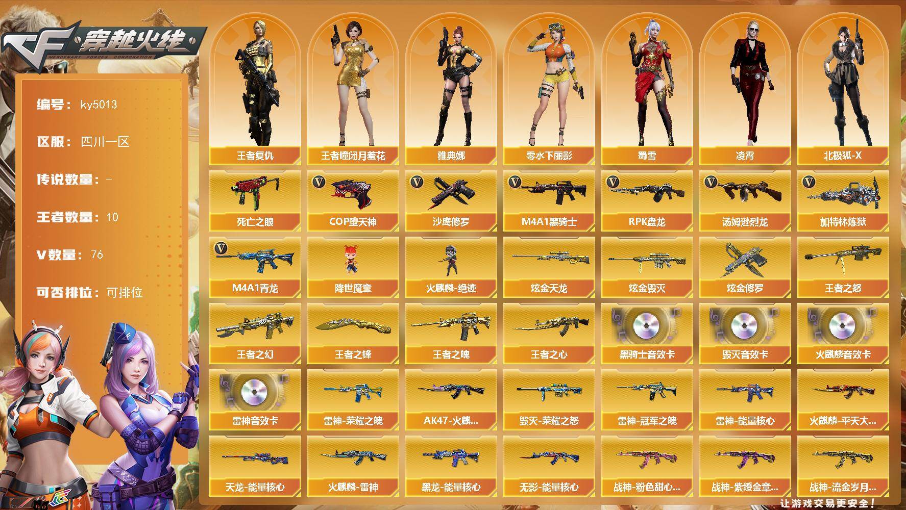 四川一区-76V-10王者-4炫金【热门武器】:M4A1-青龙,死亡之眼,M