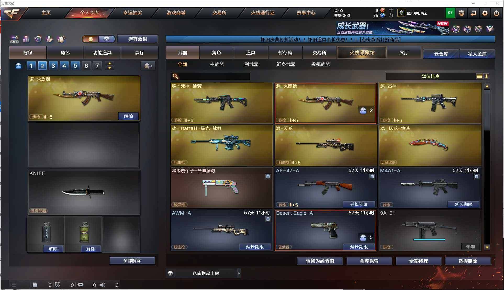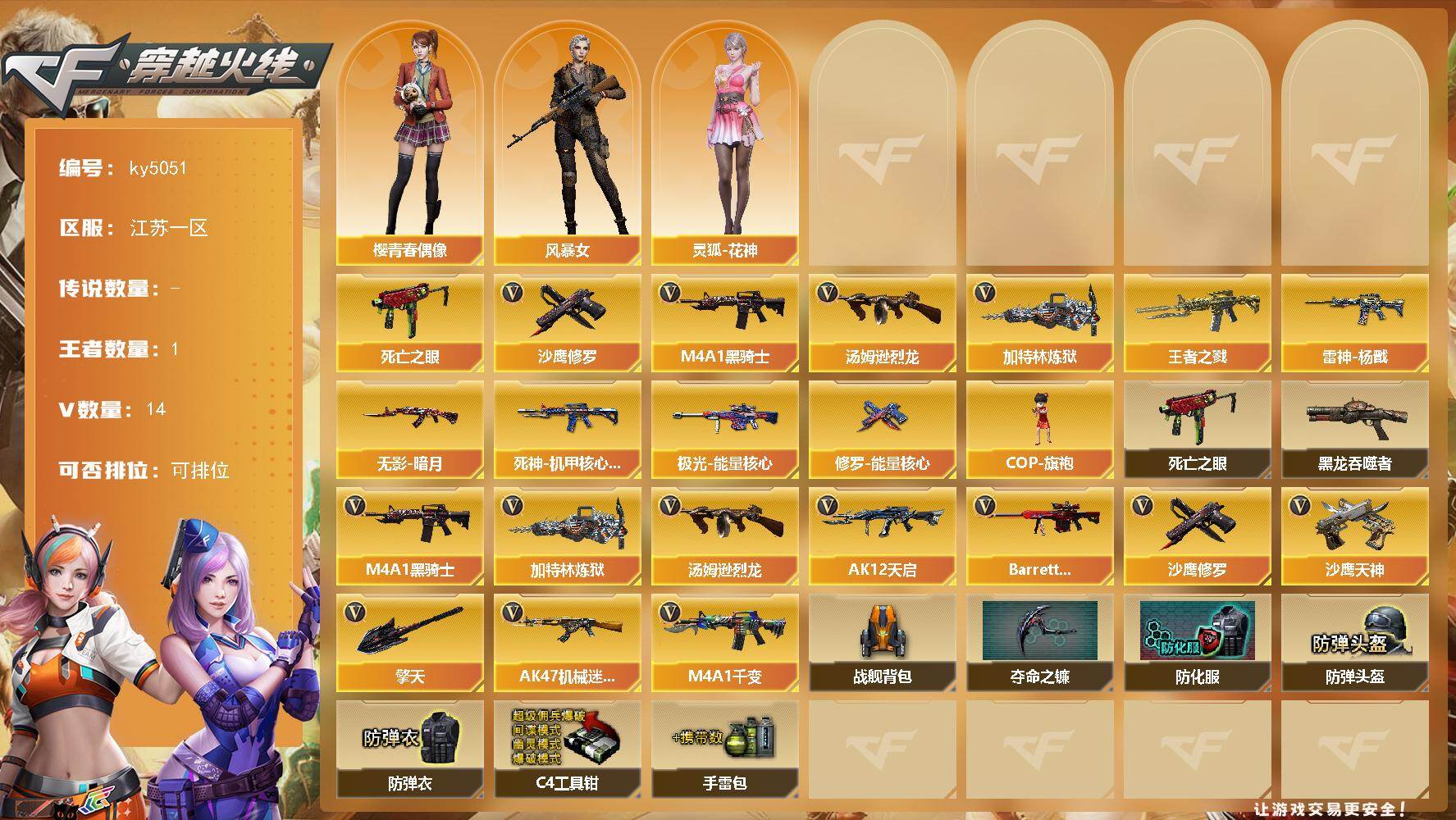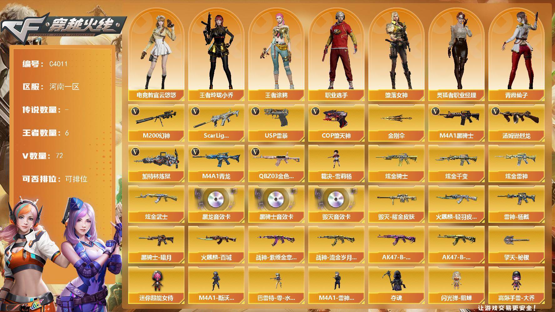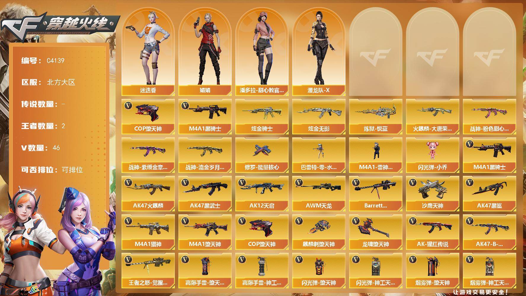 四川一区-76V-10王者-4炫金【热门武器】:M4A1-青龙,死亡之眼,M