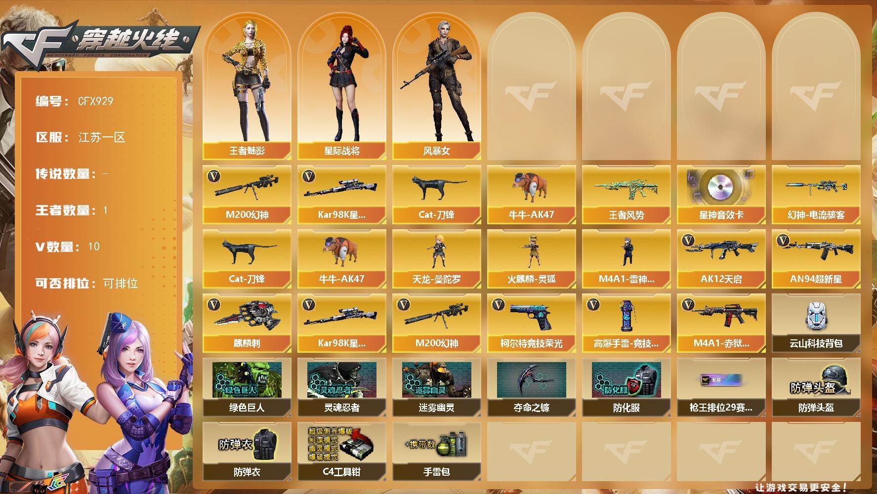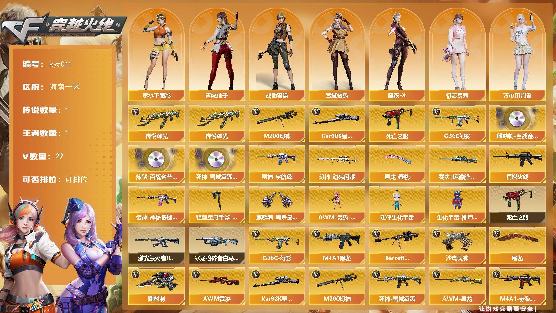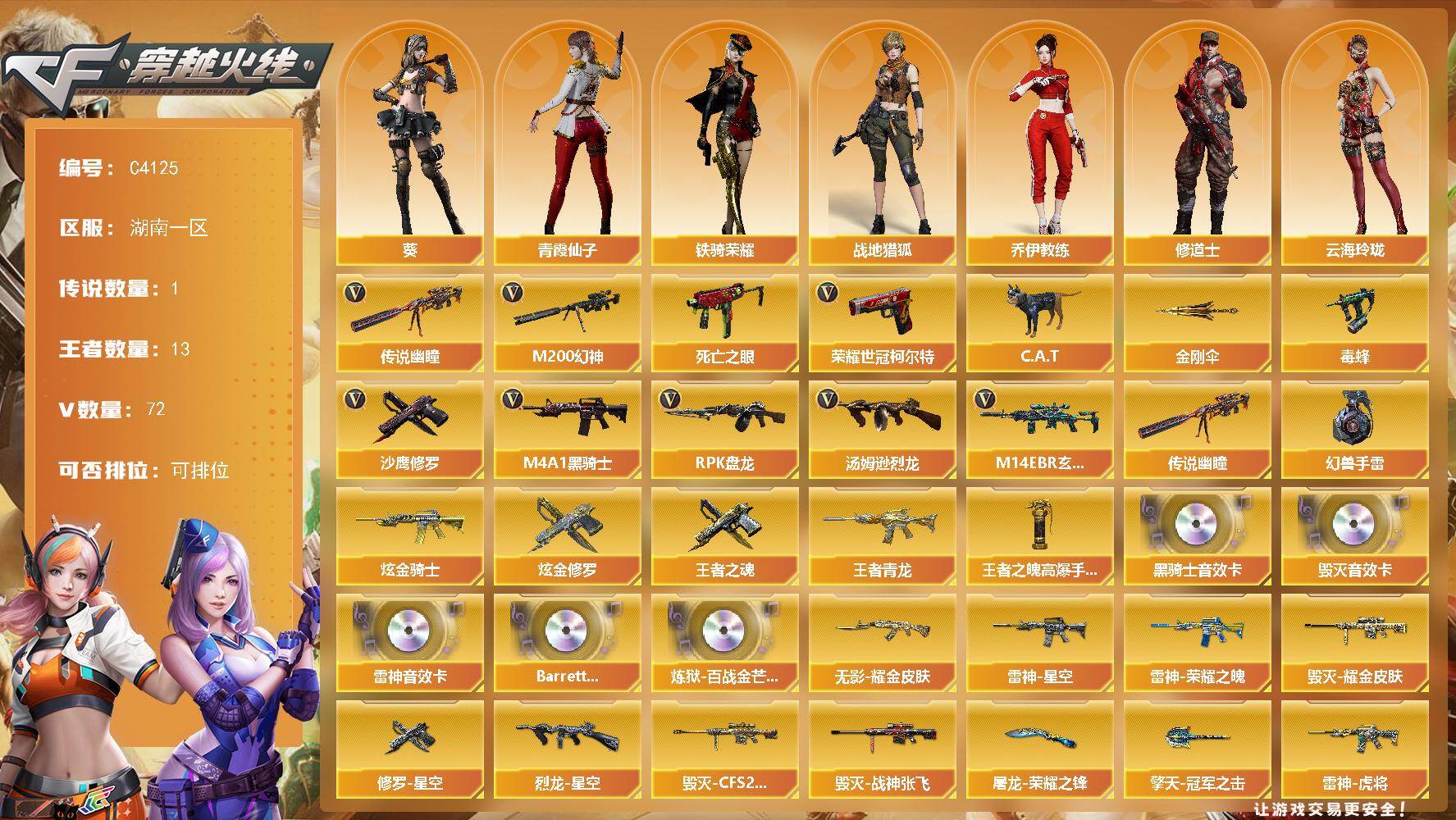 湖南一区-72V-13王者-3炫金【传说武器】:传说幽瞳【热门武器】:传说