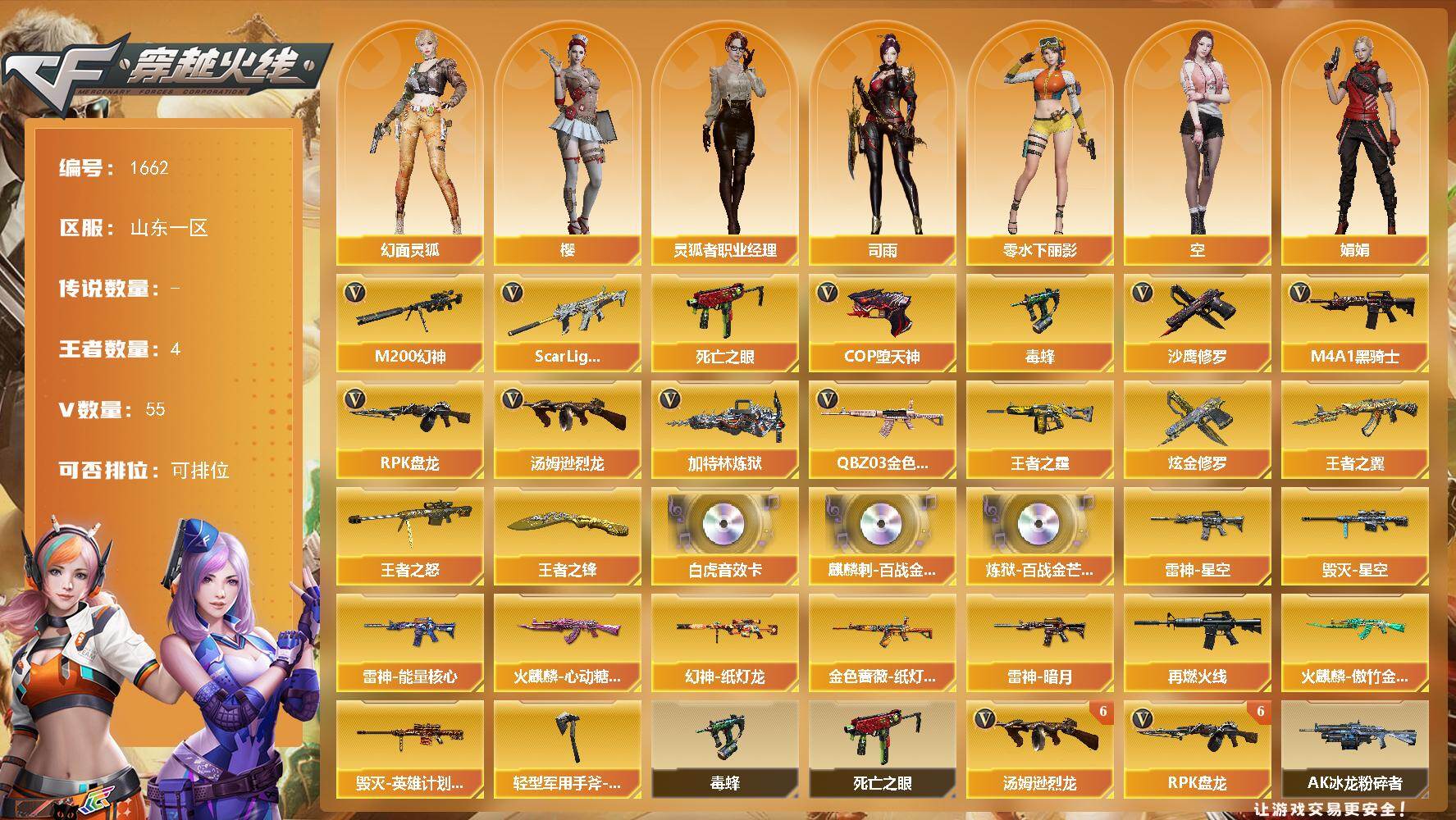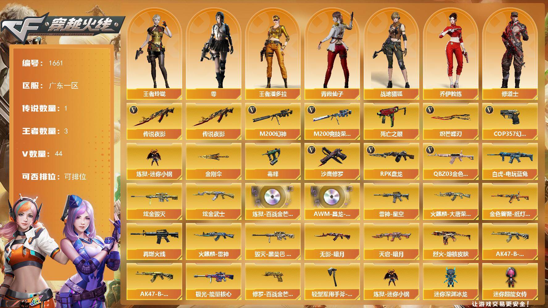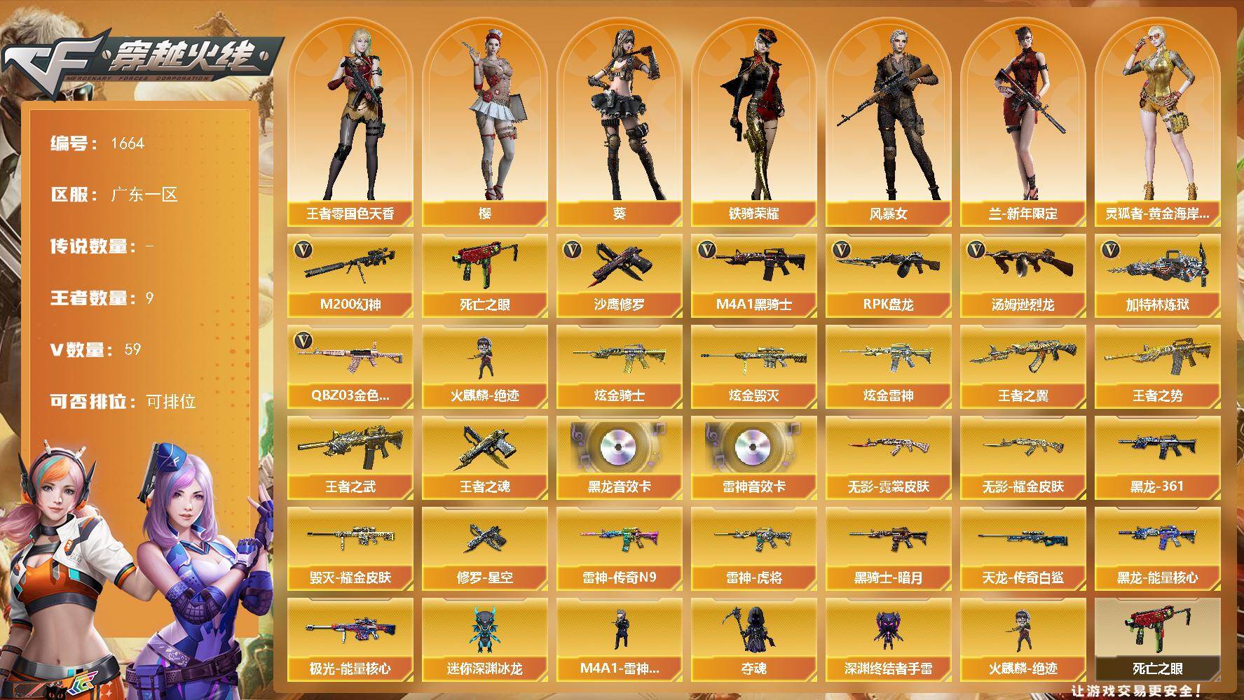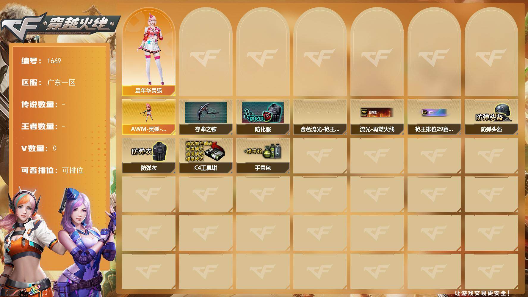 广东一区-0V-0王者武器数-0炫金武器数【角色】:嘉年华灵狐【人偶武器】
