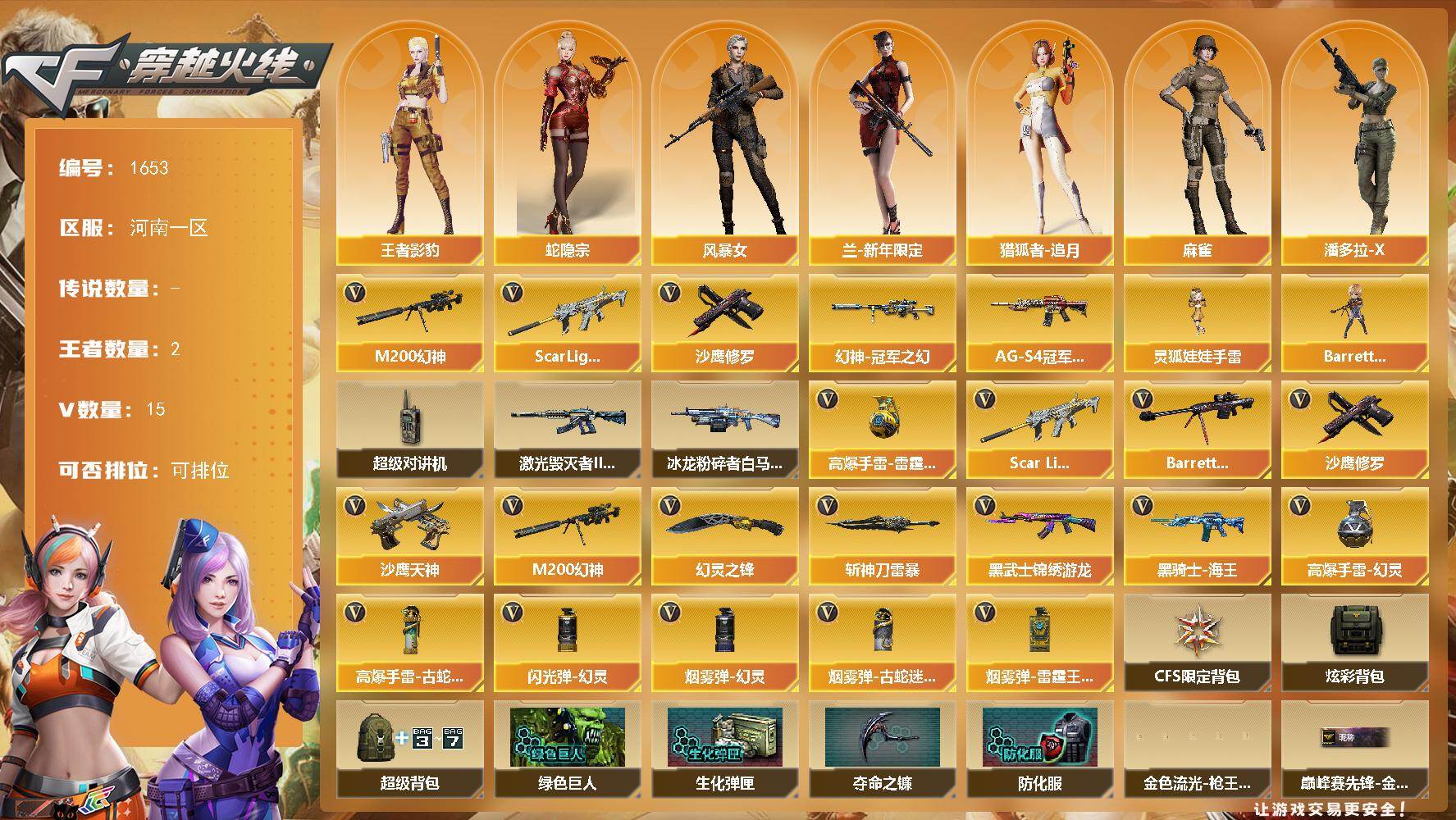 河南一区-16V-2王者武器数-0炫金武器数【热门武器】:Scar Ligh