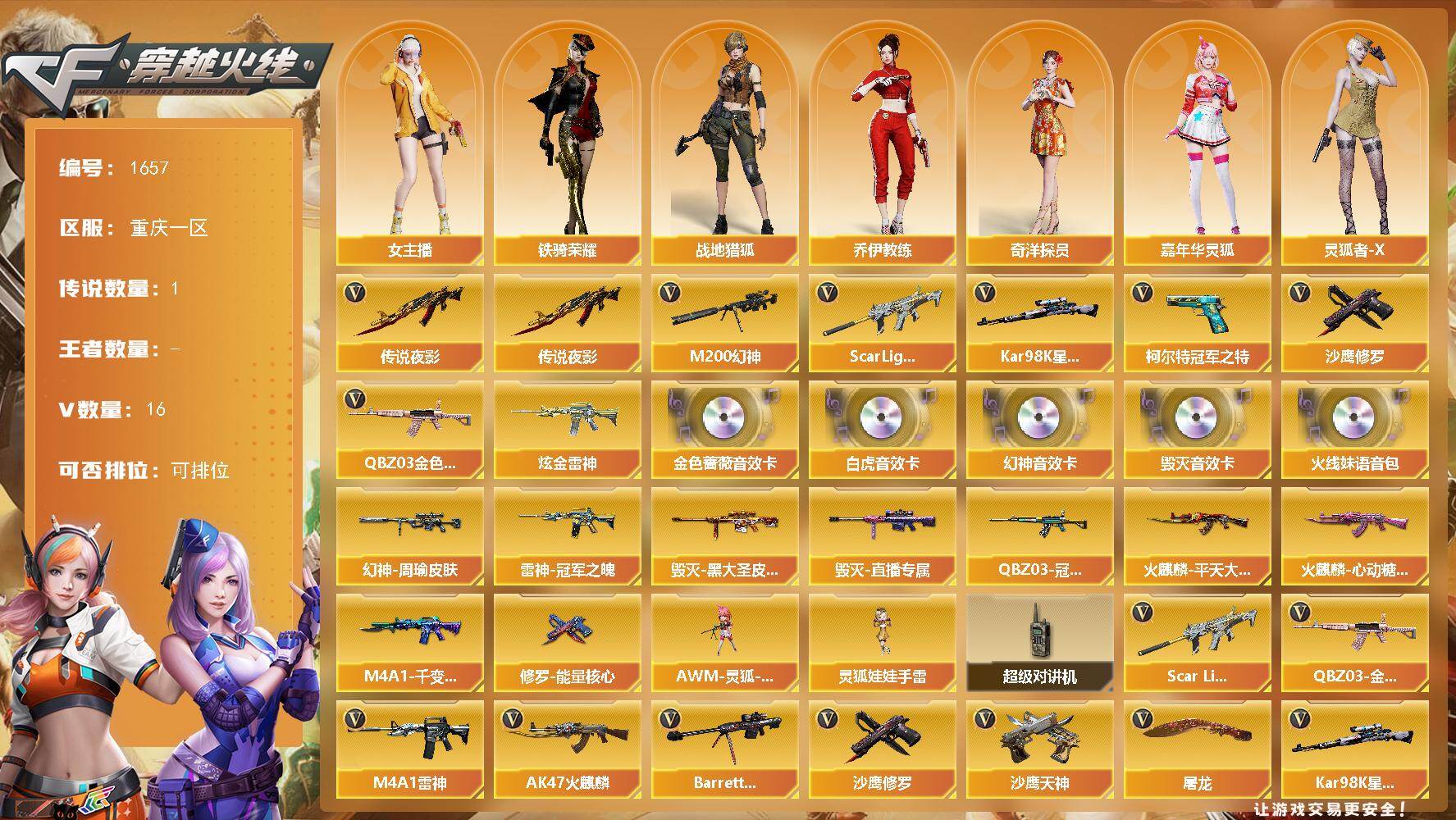 重庆一区-16V-0王者武器数-1炫金武器数【传说武器】:传说夜影【热门武