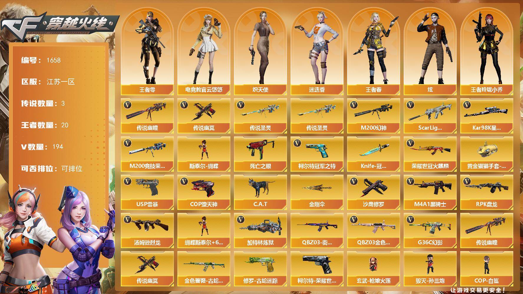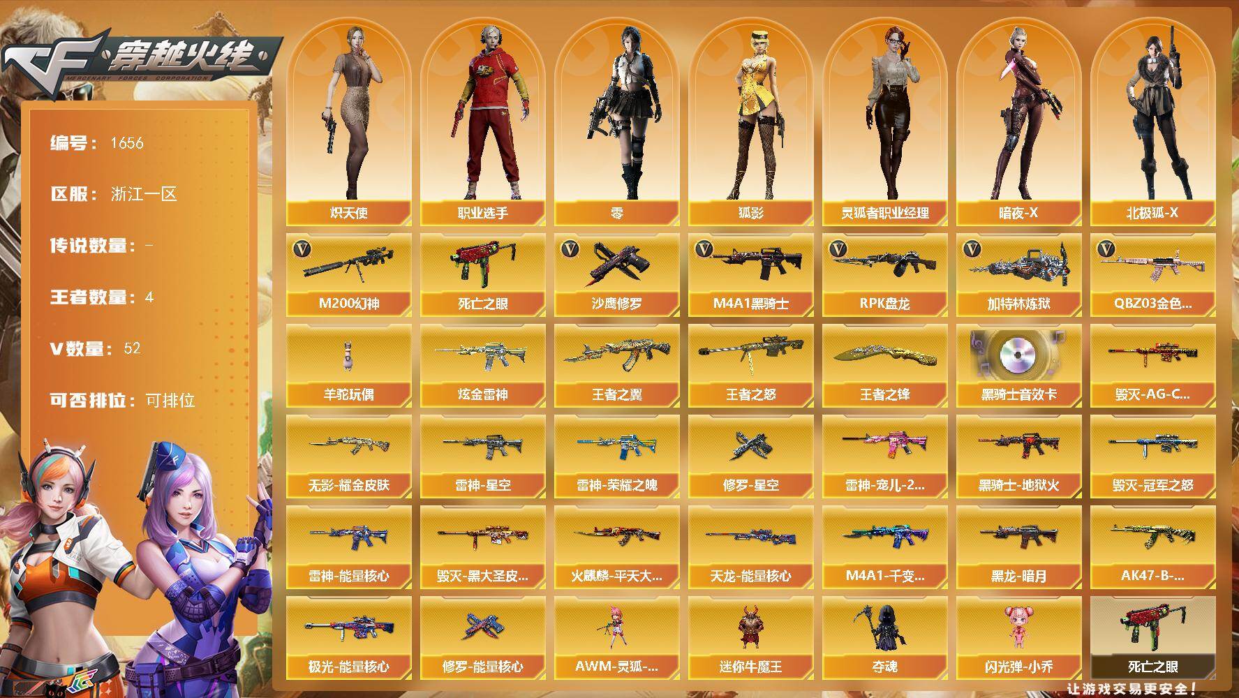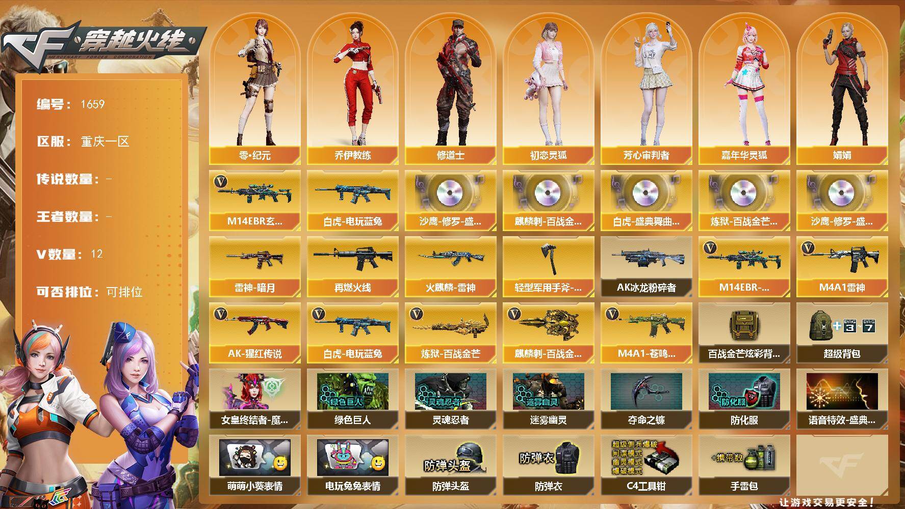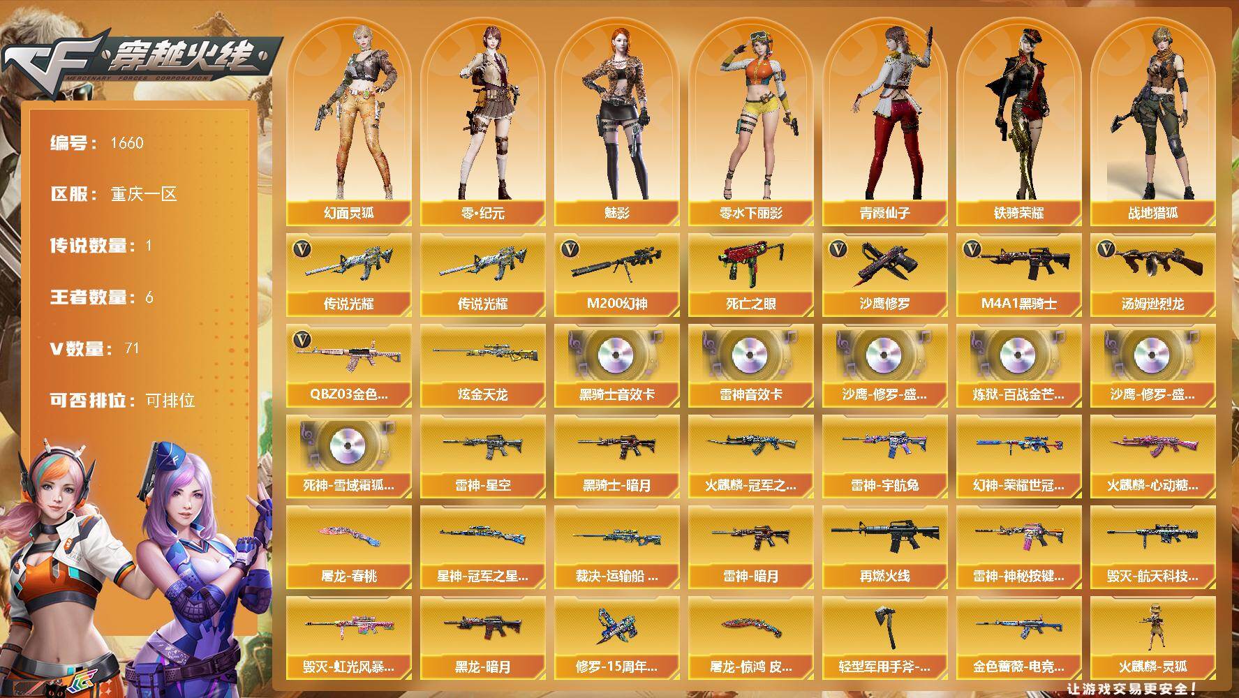 重庆一区-12V-0王者武器数-0炫金武器数【热门武器】:M14EBR-玄武