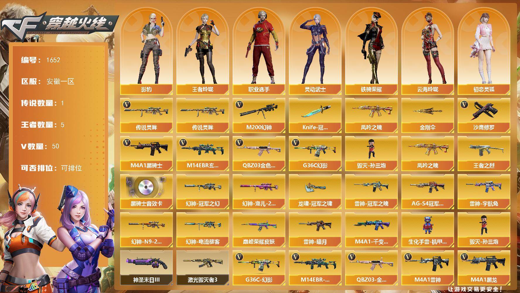 安徽一区-54V-5王者武器数-0炫金武器数【传说武器】:传说灵眸【热门武