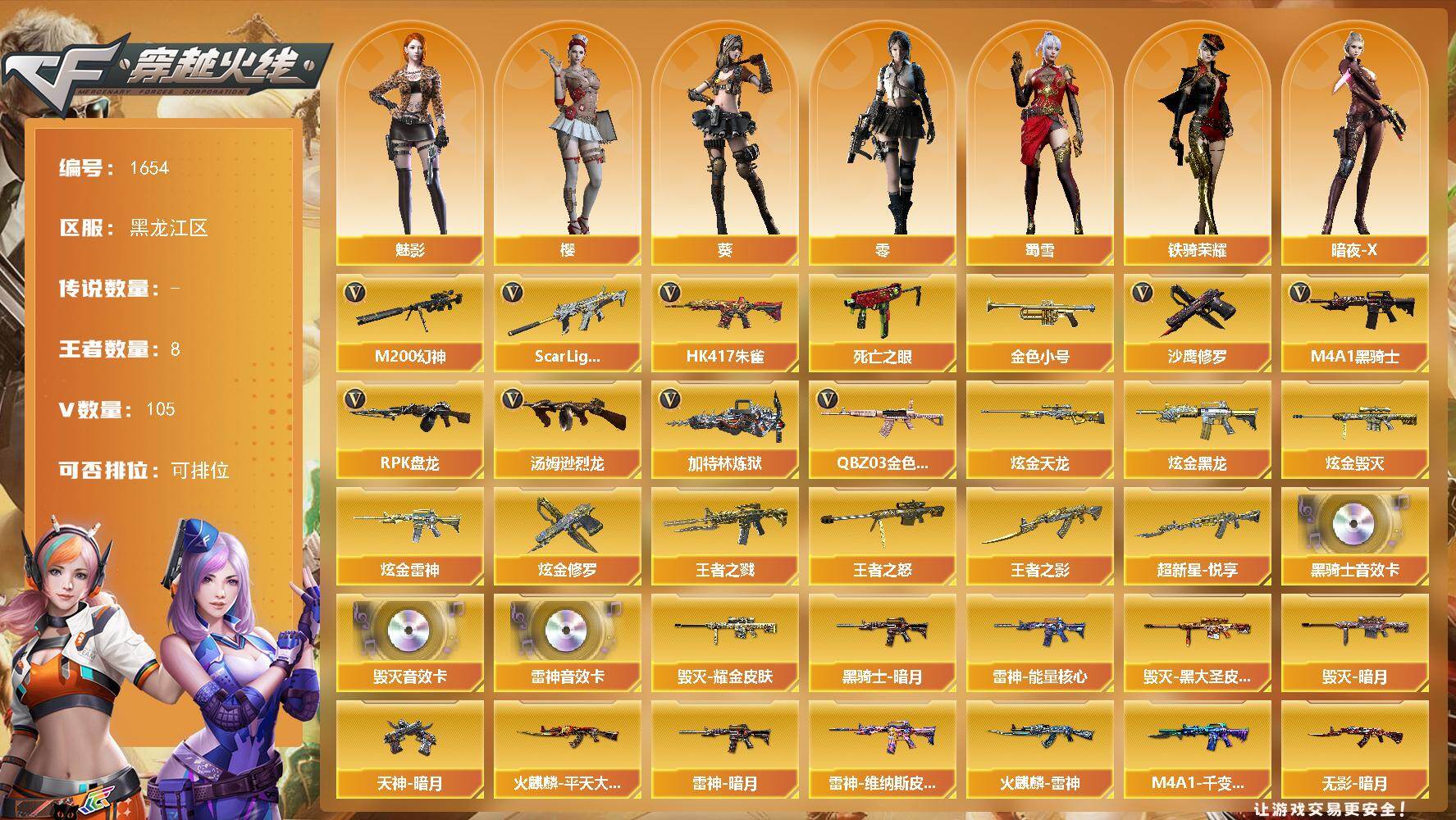黑龙江区-109V-8王者武器数-6炫金武器数【热门武器】:QBZ03-金色