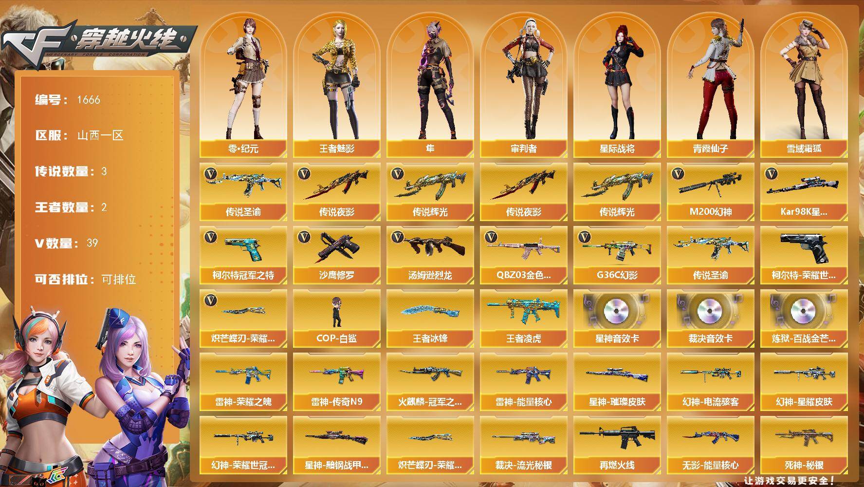 山西一区-38V-2王者武器数-0炫金武器数【传说武器】:传说辉光,传说夜影