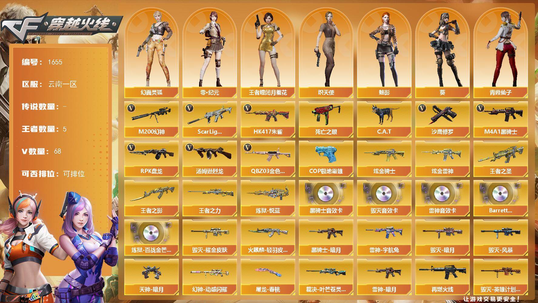 云南一区-72V-5王者武器数-3炫金武器数【热门武器】:QBZ03-金色蔷