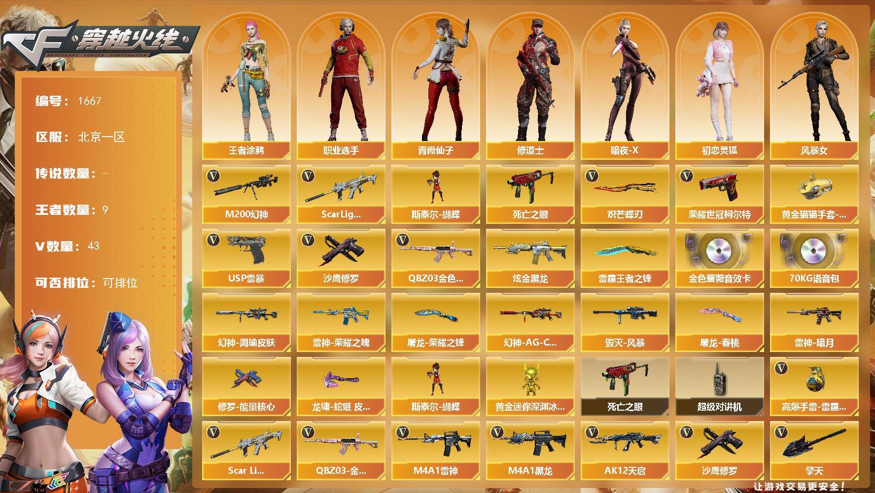 北京一区-68V-13王者武器数-5炫金武器数【热门武器】:QBZ03-金色