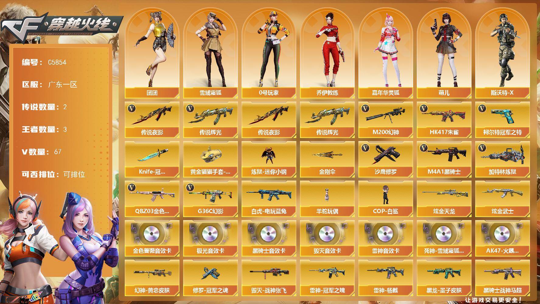 广东一区-119V-11王者武器数-6炫金武器数【热门武器】