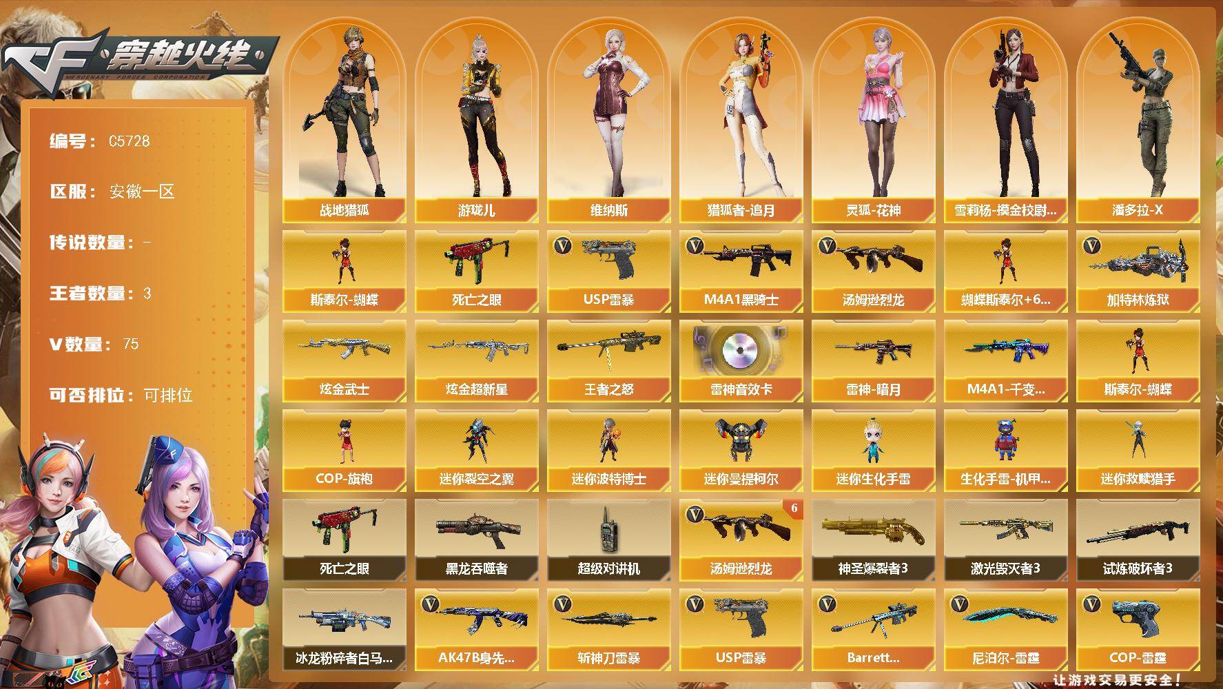 安徽一区-77V-3王者武器数-2炫金武器数【热门武器】:死