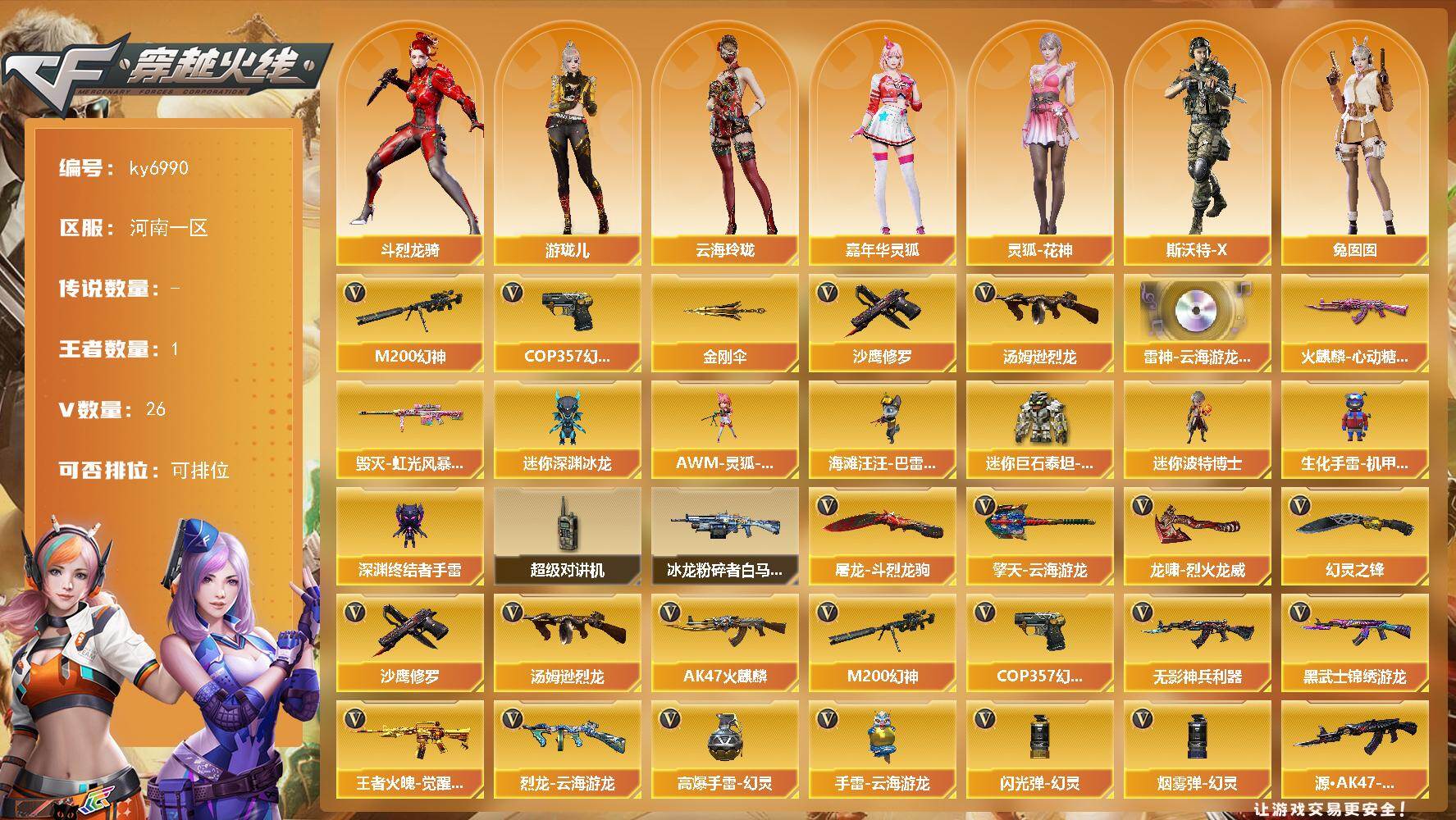 河南一区-28V-1王者武器数-0炫金武器数【热门武器】:M200-幻神,