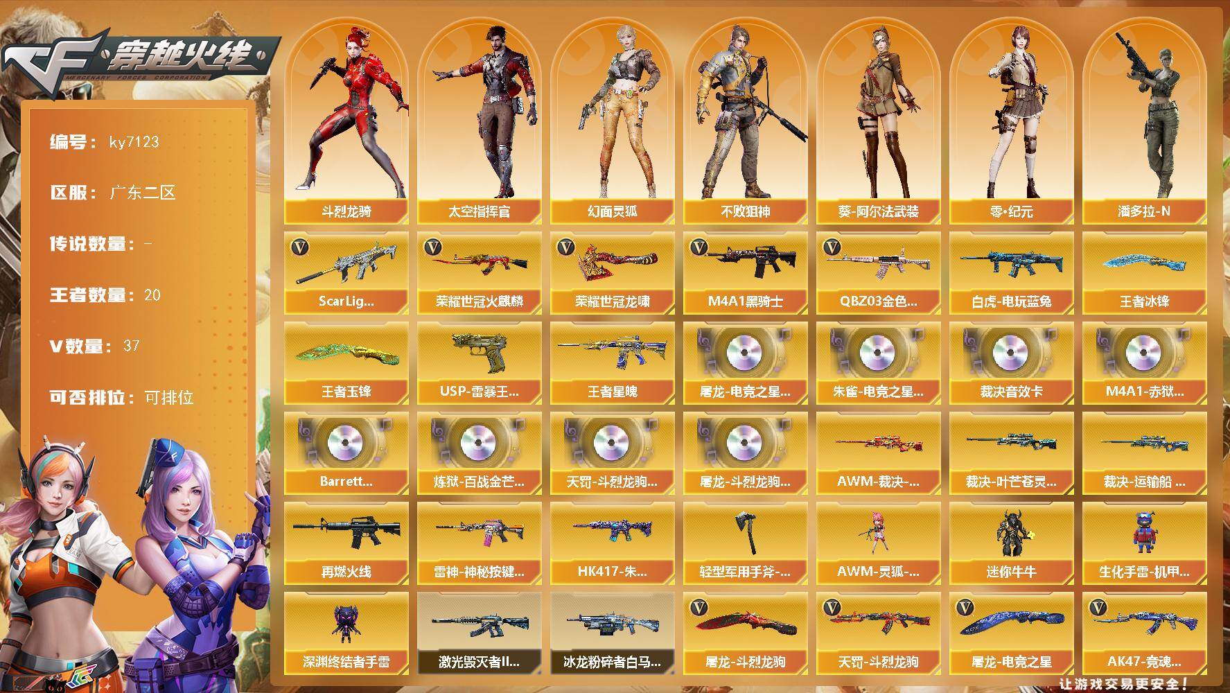 广东二区-42V-20王者武器数-0炫金武器数【传说角色】:传说星骇【热
