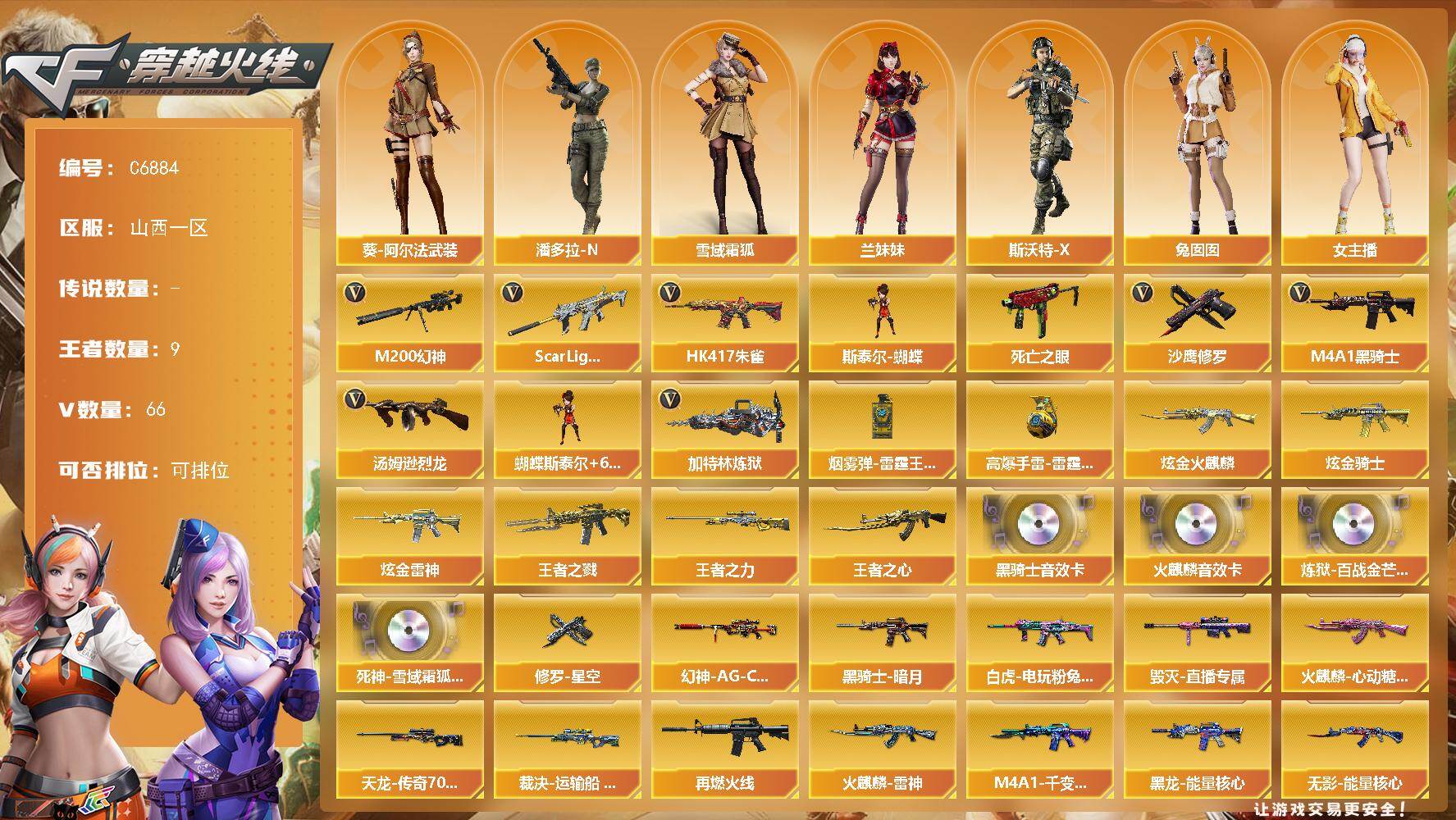 山西一区-69V-9王者武器数-3炫金武器数【热门武器】:Scar Ligh