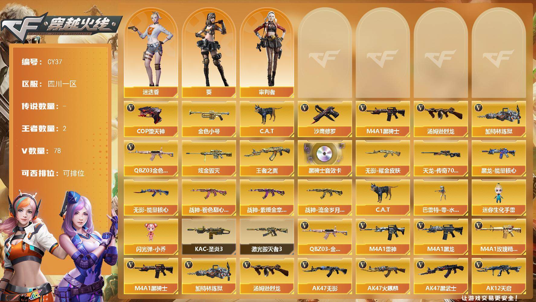 【CY37】四川一区-78V-2王者-1炫金【热门武器】:QBZ03-金色蔷