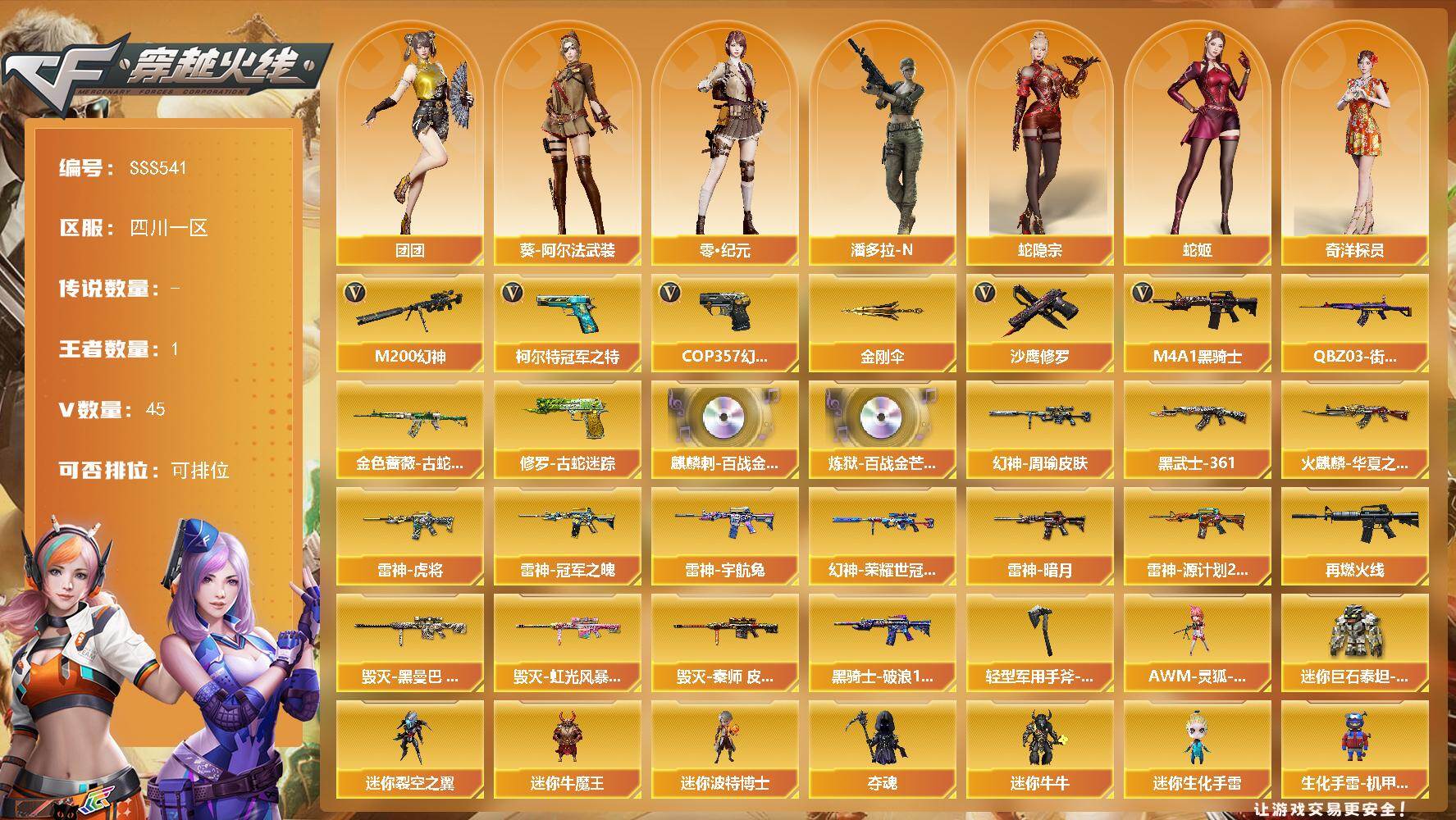 四川一区-40V-1王者武器数-0炫金武器数【传说角色