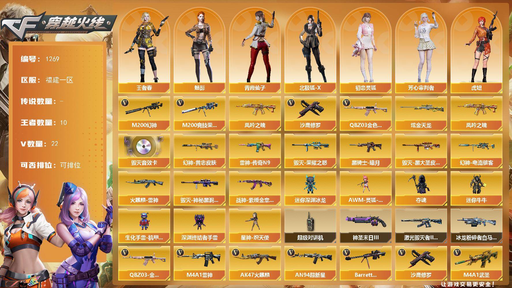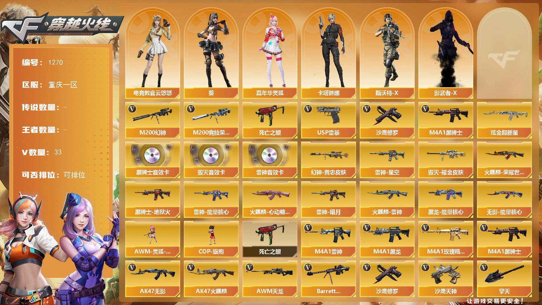 重庆一区-33V-0王者-1炫金【热门武器】:M200-幻神,M200-竞技