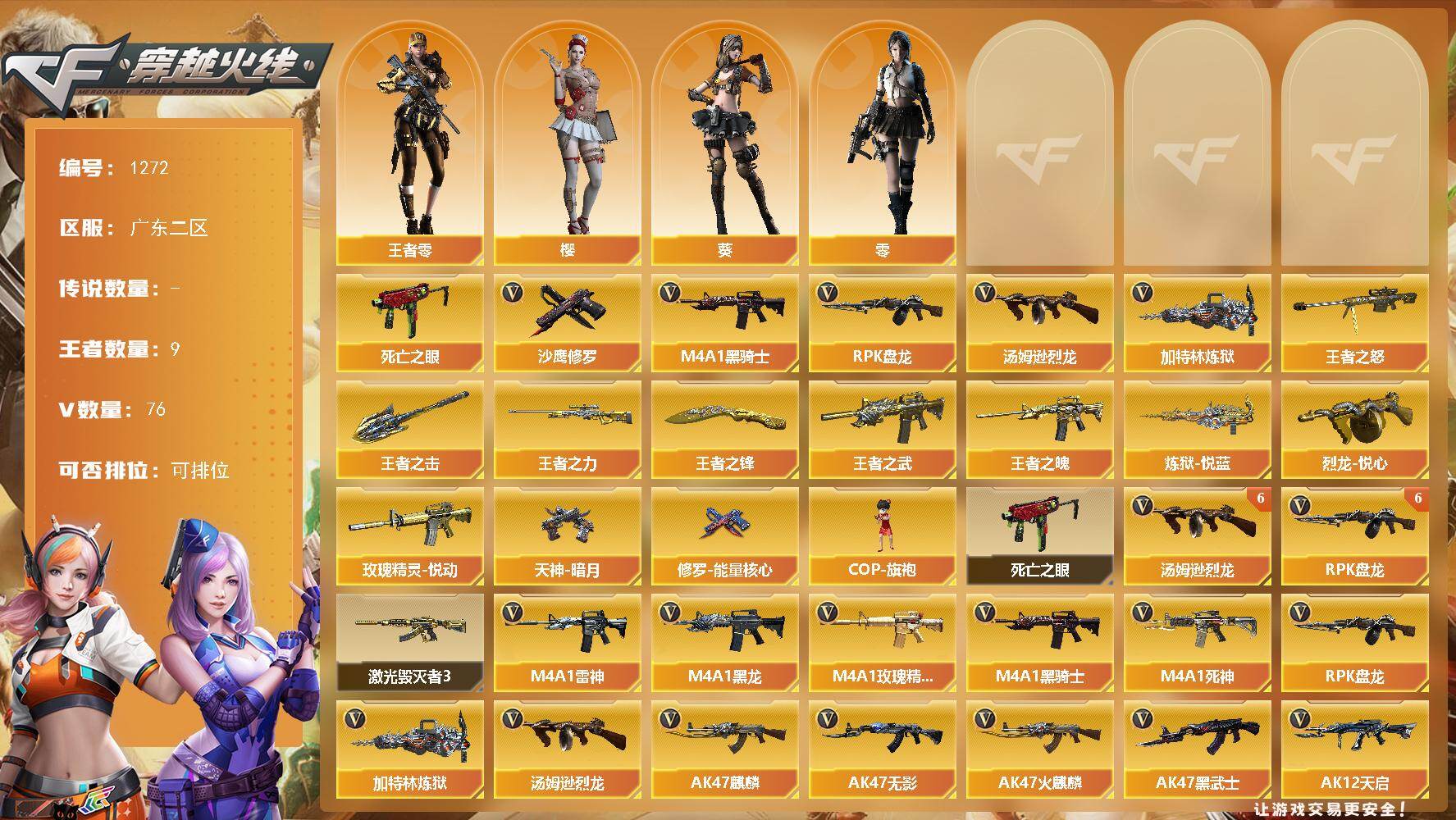 广东二区-76V-9王者-0炫金【热门武器】:死亡之眼,M4A1-黑骑士,汤