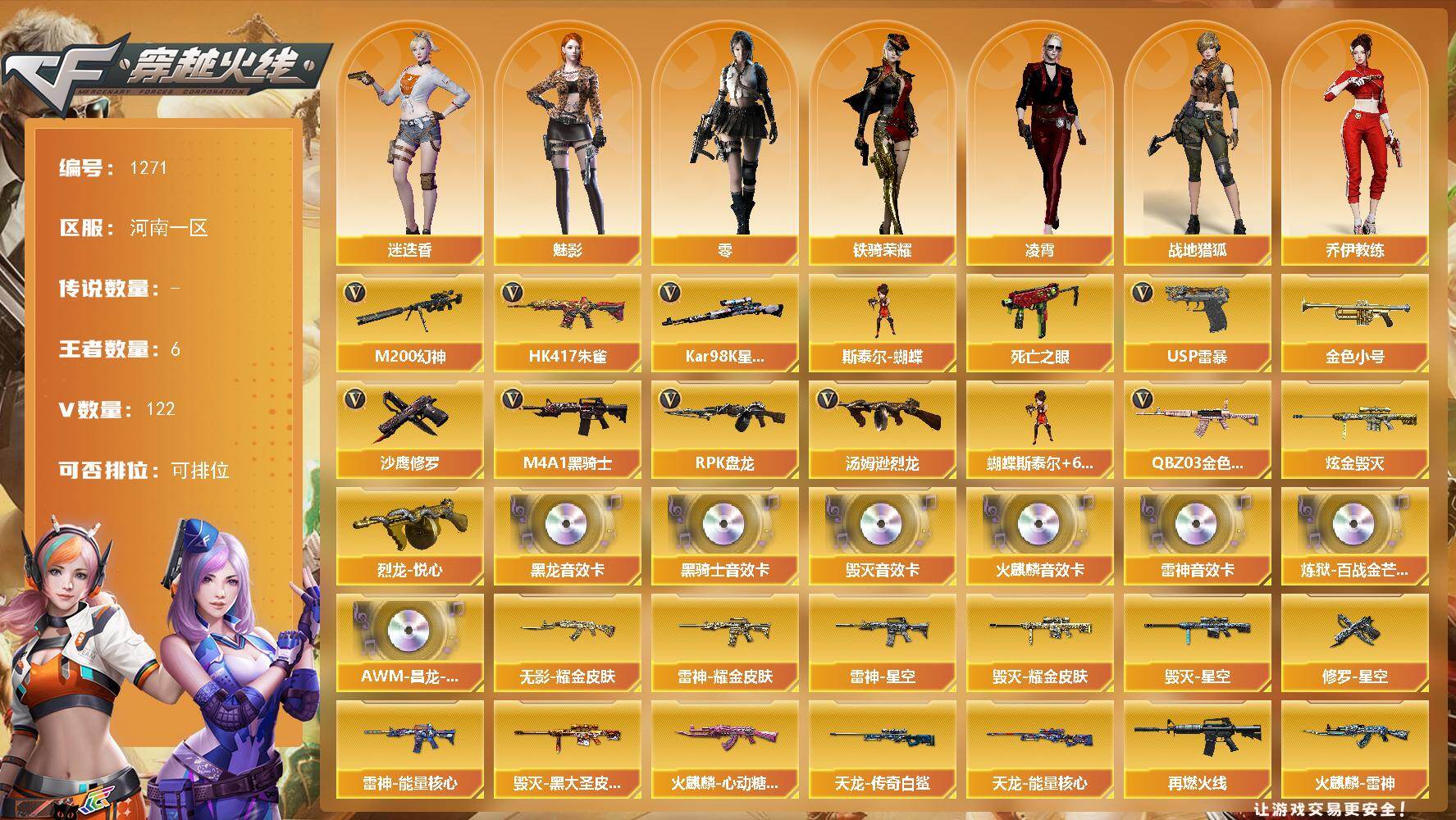 黑龙江区-42V-5王者-1炫金【热门武器】:M200-幻神,M4A1-黑骑
