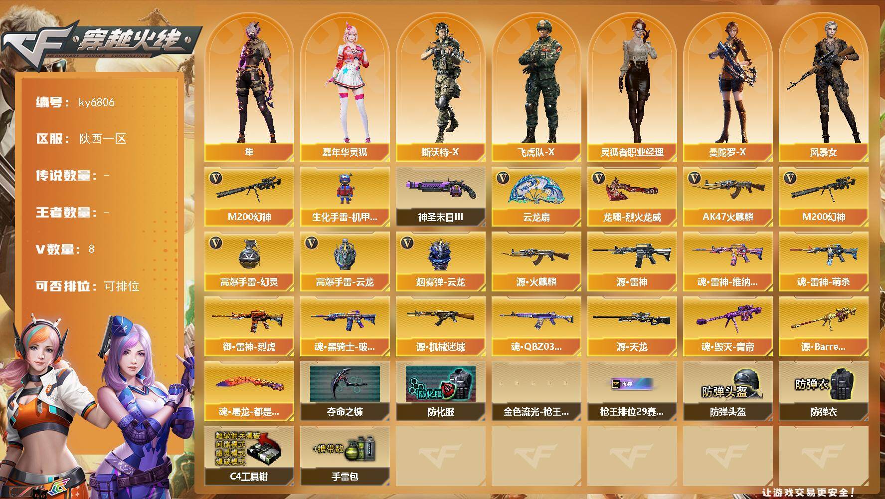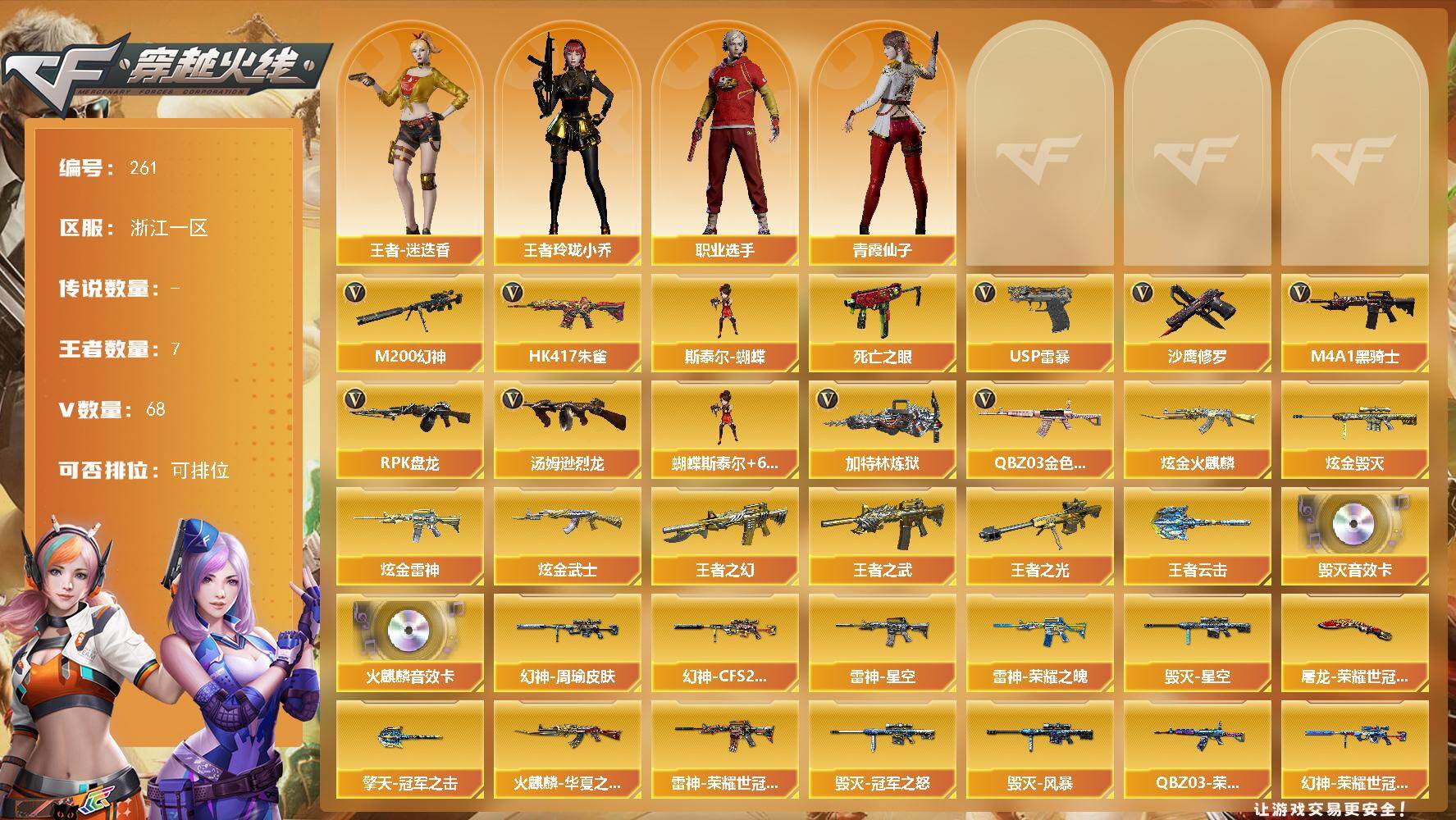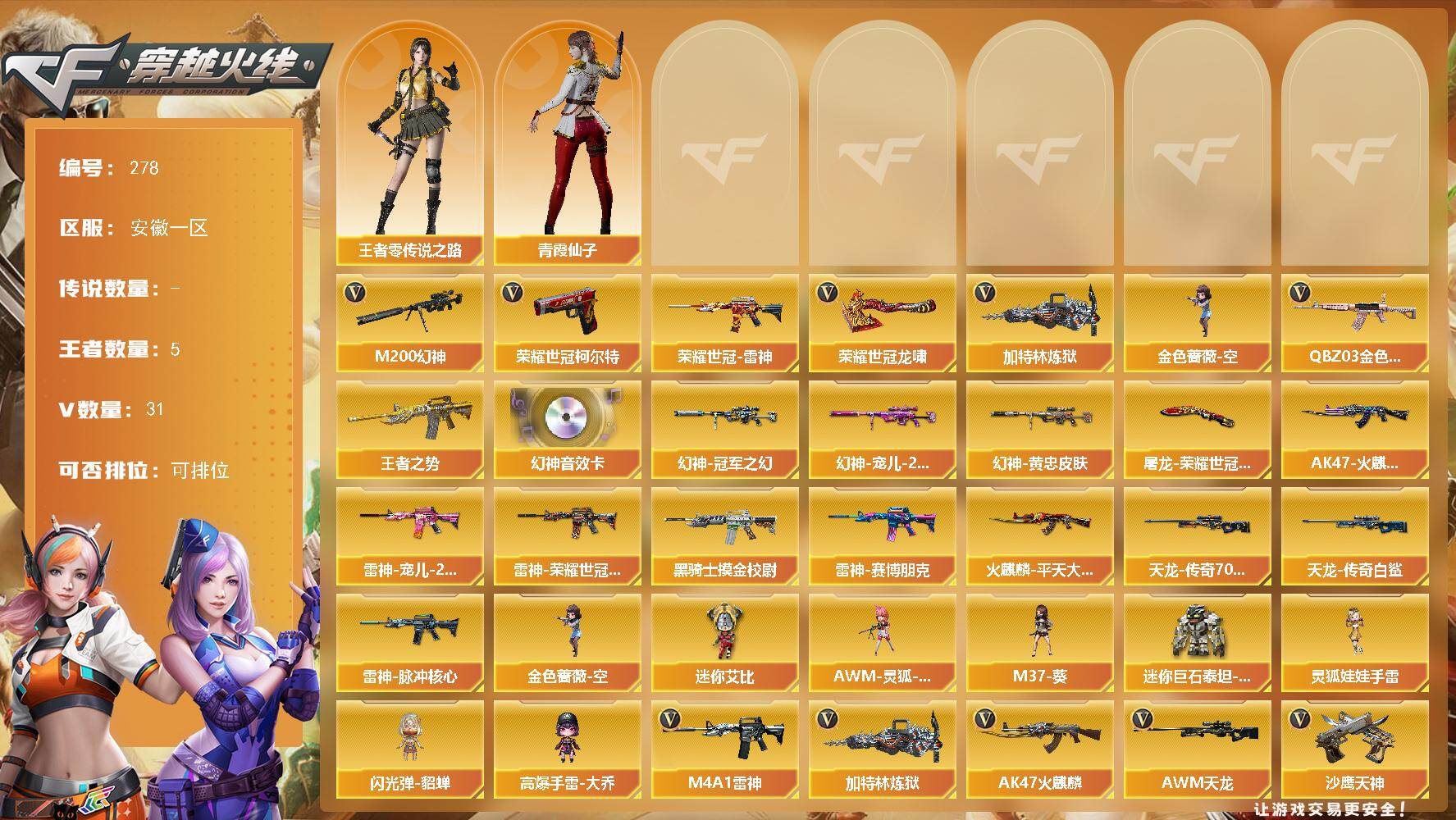 安徽一区-87V-6王者武器数-4炫金武器数【热门武器】:M200-幻神,