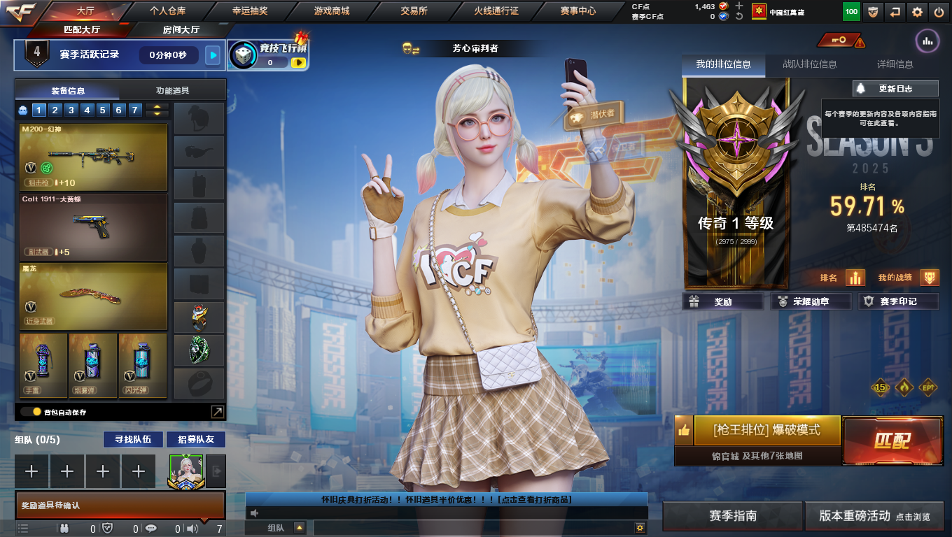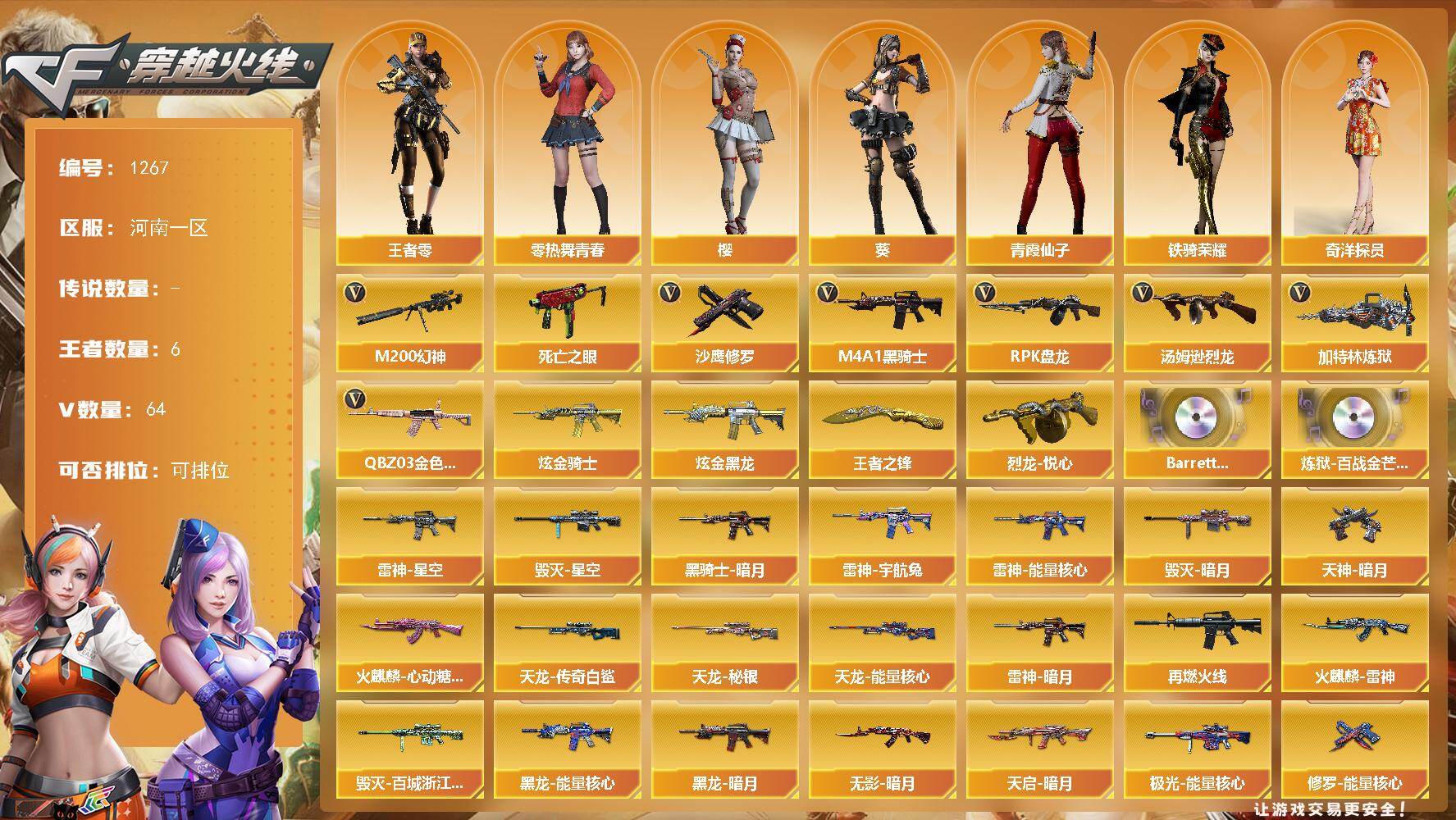 黑龙江区-42V-5王者-1炫金【热门武器】:M200-幻神,M4A1-黑骑