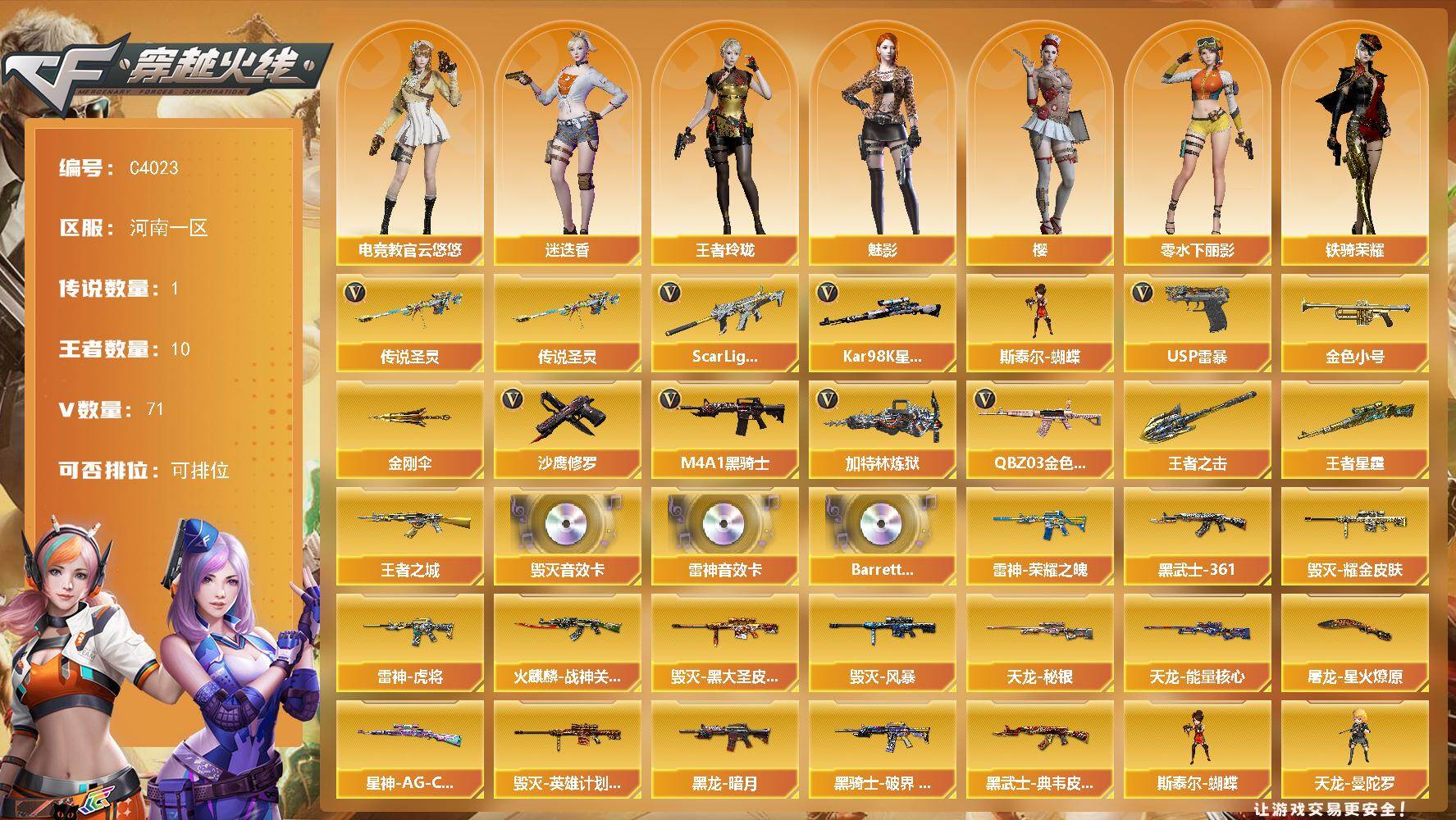 河南一区-56V-6王者-0炫金【传说武器】:传说圣谕【传说角色】:传说星