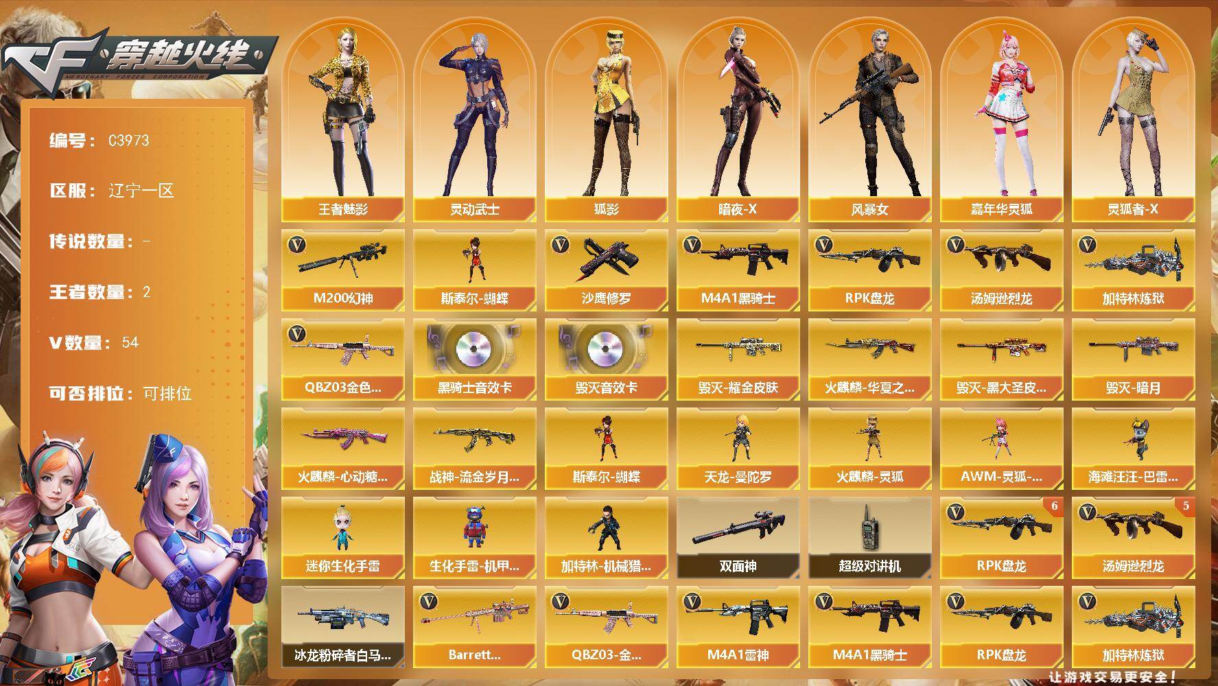 河北一区-16V-2王者-1炫金【热门武器】:死亡之眼,M4A1-黑骑士【