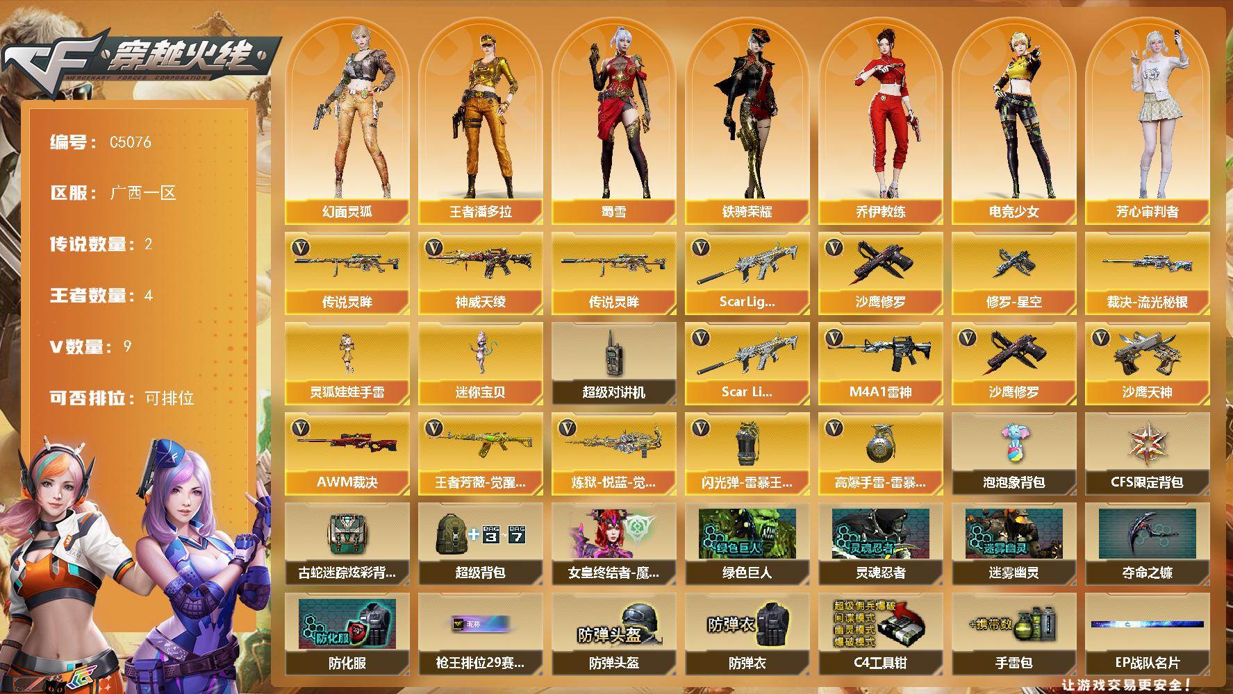 江西一区-67V-6王者武器数-1炫金武器数【热门武器】:Scar Ligh