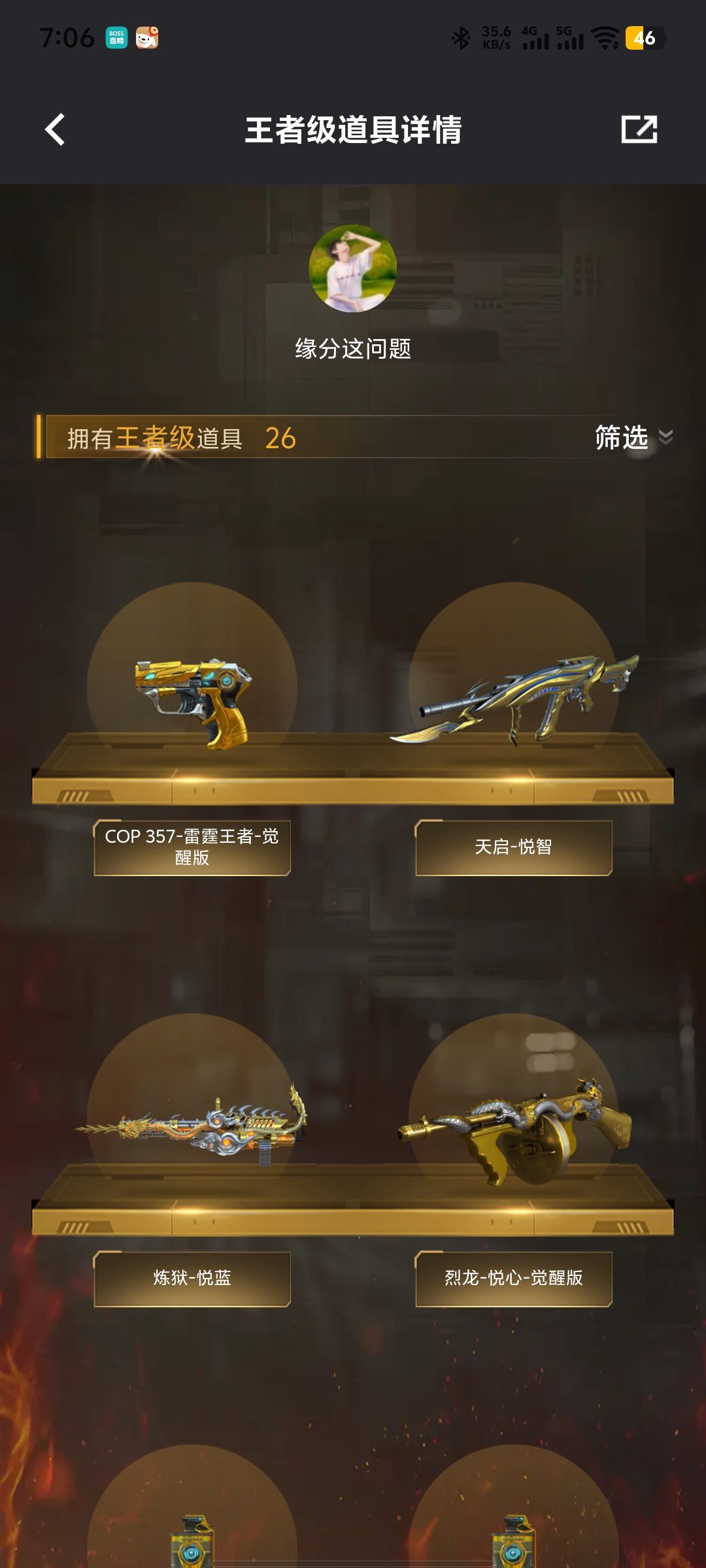 重庆一区-30V-0王者武器数-0炫金武器数【热门武器】:加特林-炼狱,沙