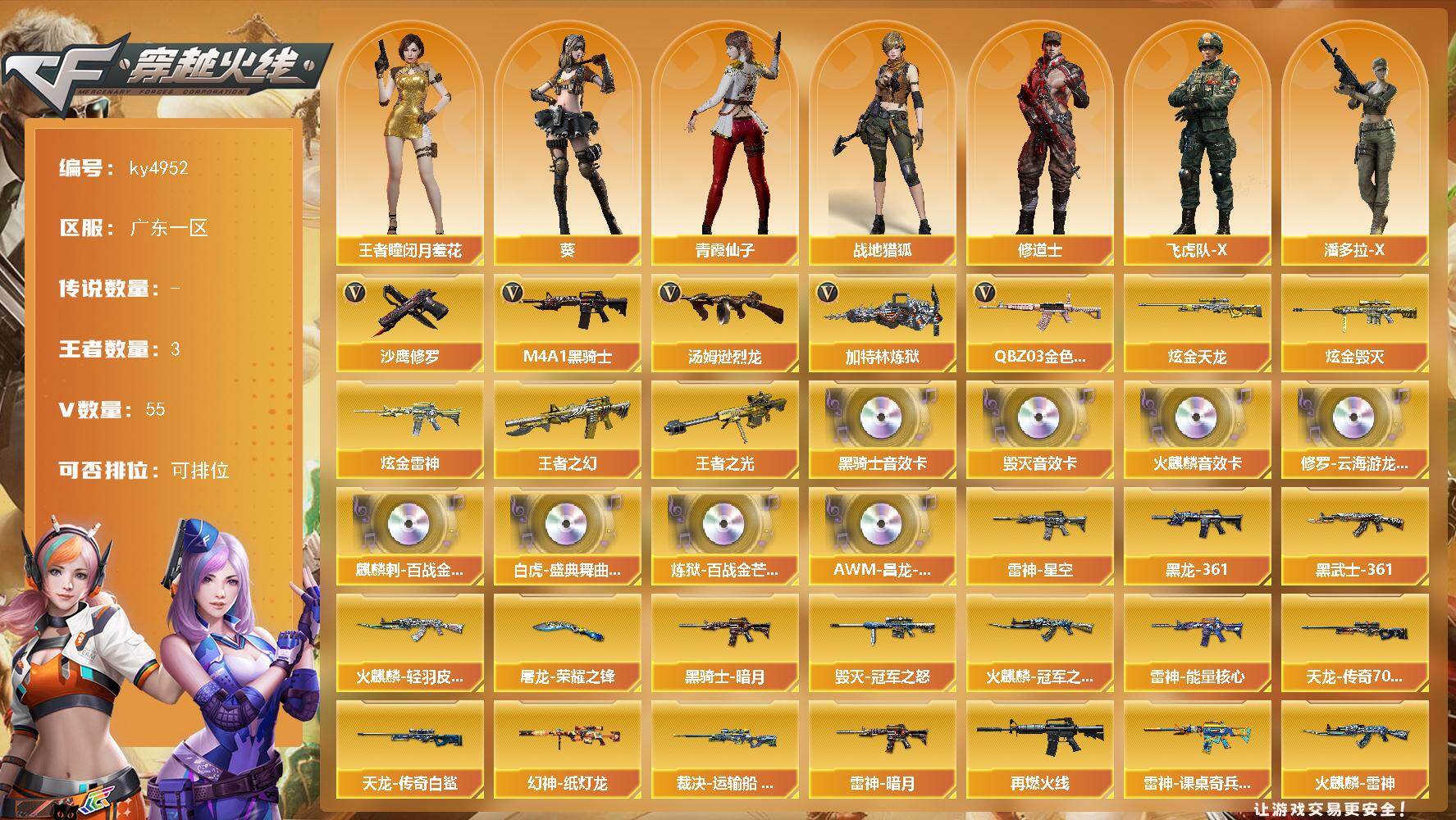 广东一区-55V-3王者-4炫金【热门武器】:QBZ03-金色蔷薇,M4A1