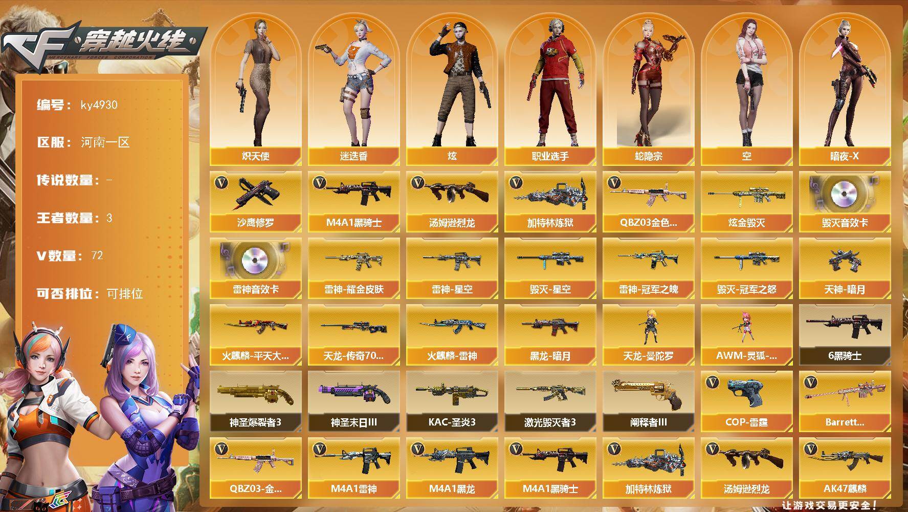 河南一区-72V-3王者-1炫金【热门武器】:QBZ03-金色蔷薇,M4A1