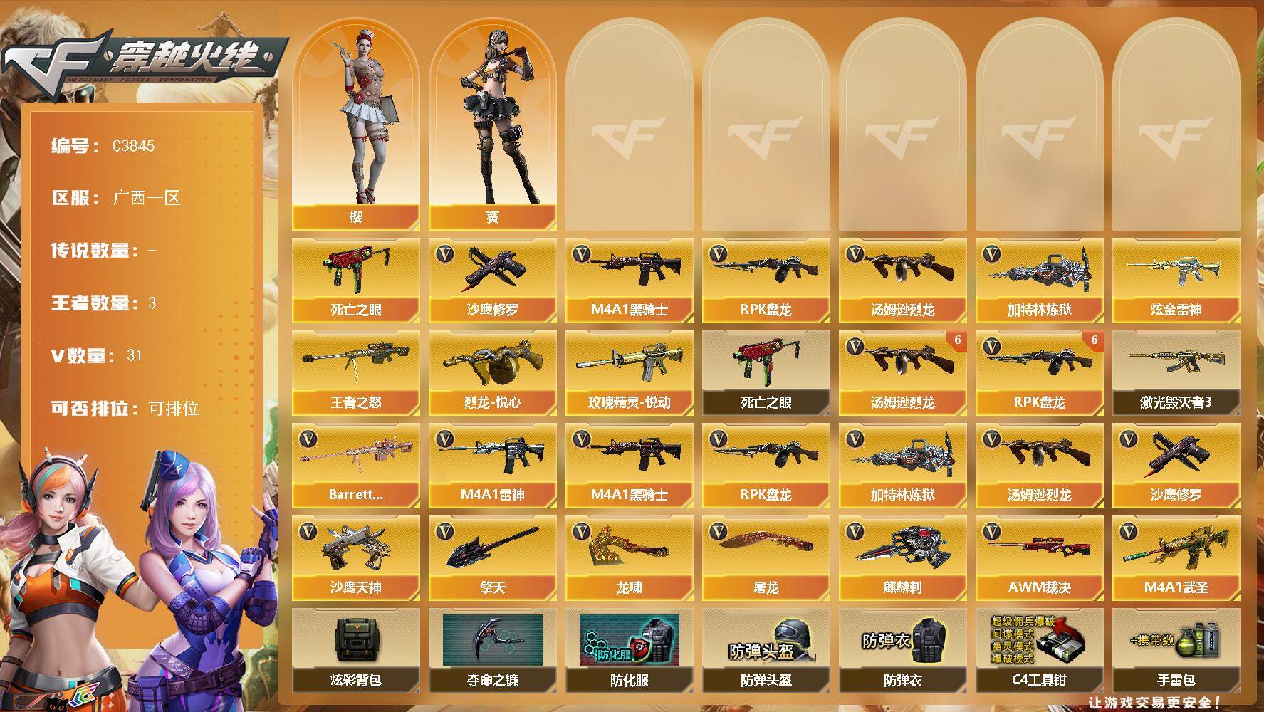 四川一区-95V-7王者-0炫金【热门武器】:HK417-朱雀,M200-幻