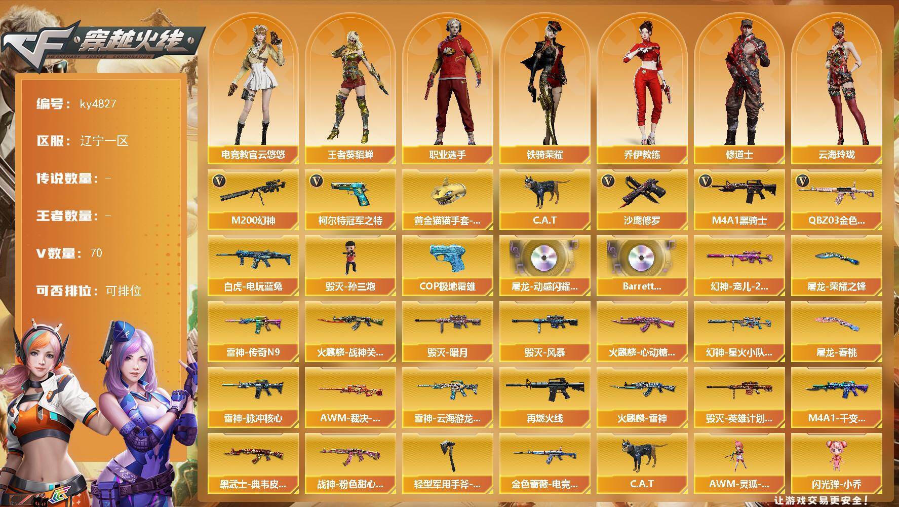 辽宁一区-70V-0王者-0炫金【热门武器】:QBZ03-金色蔷薇,M200
