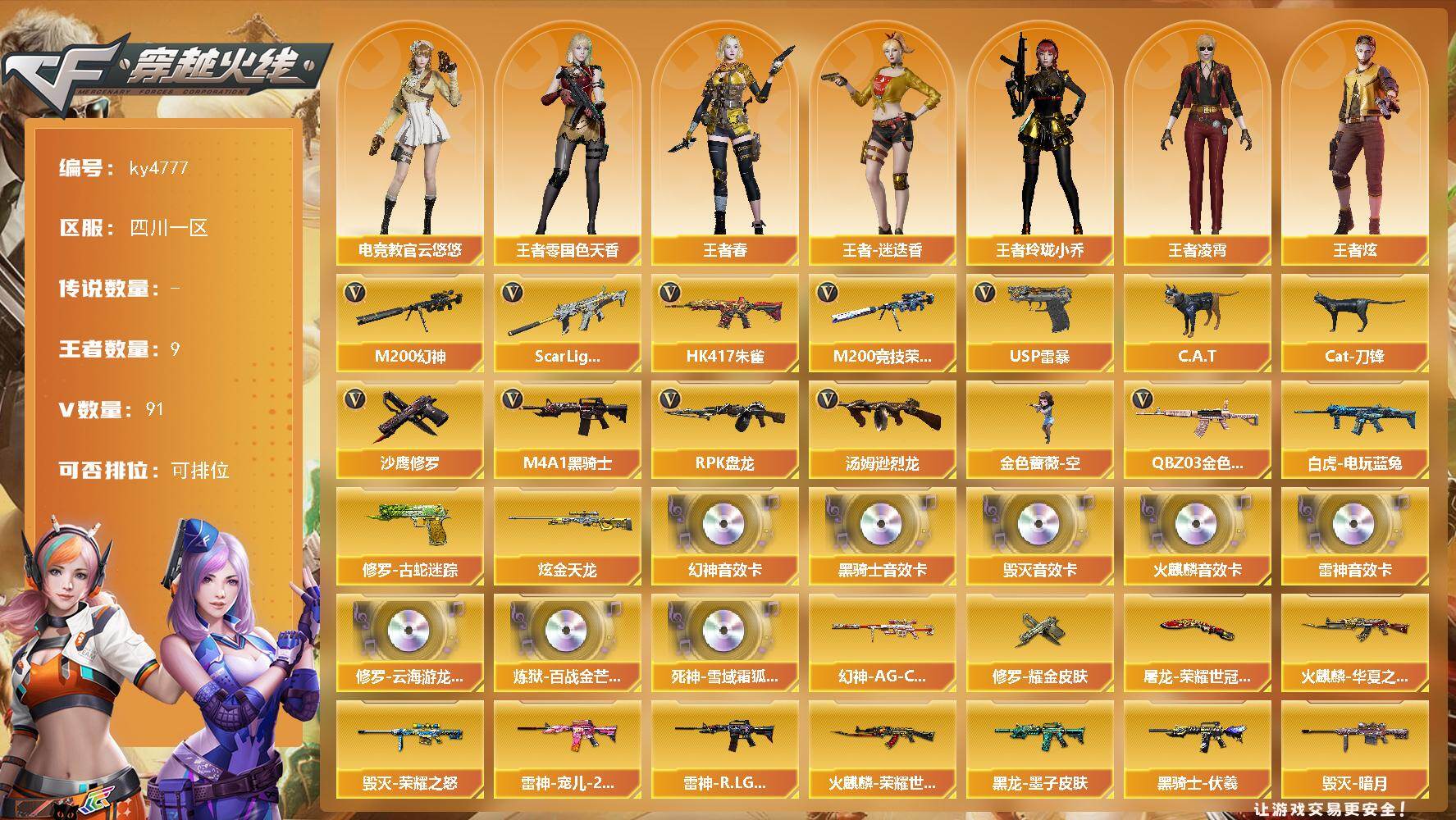 四川一区-91V-9王者-1炫金【热门武器】:QBZ03-金色蔷薇,Scar