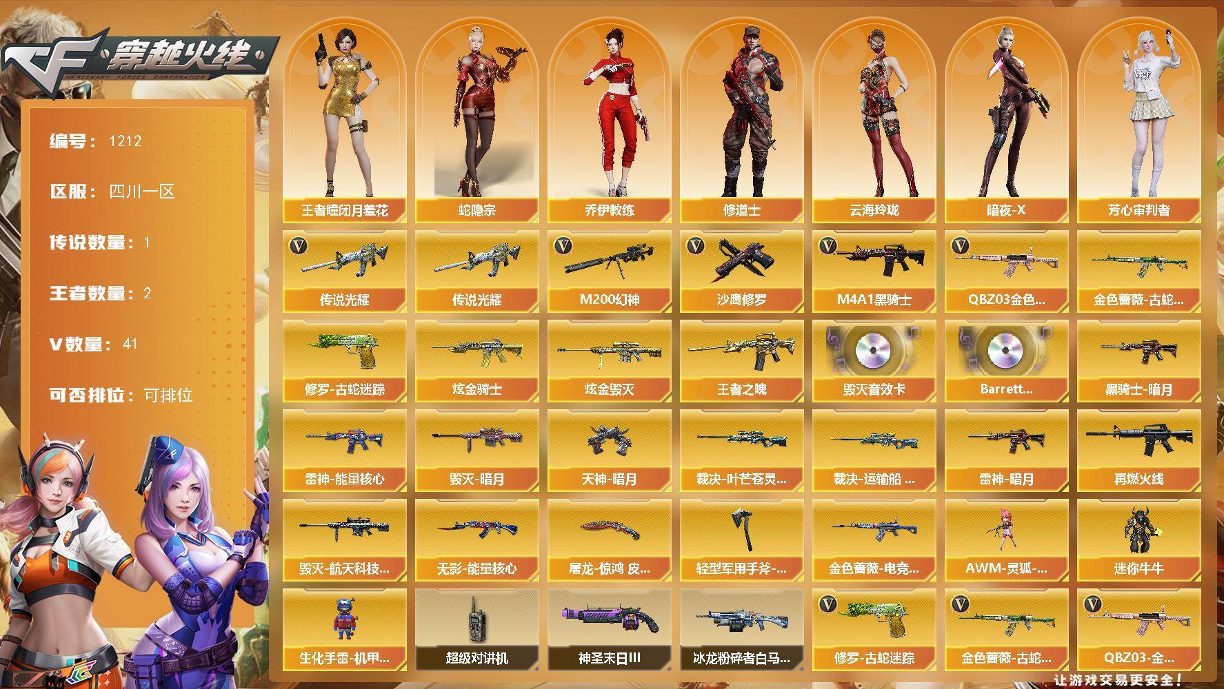 四川一区-41V-2王者-2炫金【传说武器】:传说光耀【传说角色】:传说星