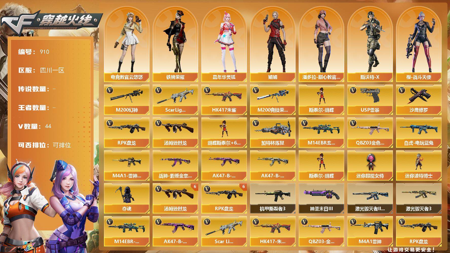 湖南一区-30V-0王者-0炫金【热门武器】:G36C-幻影,M200-幻神