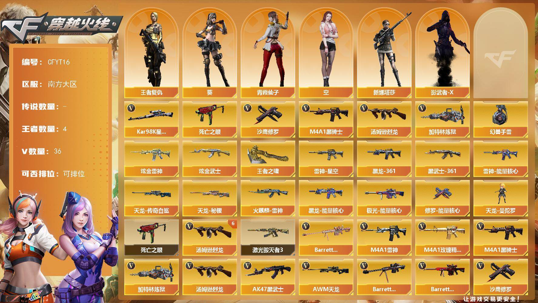 北方大区-59V-7王者-1炫金【热门武器】:M200-幻神,M4A1-黑骑