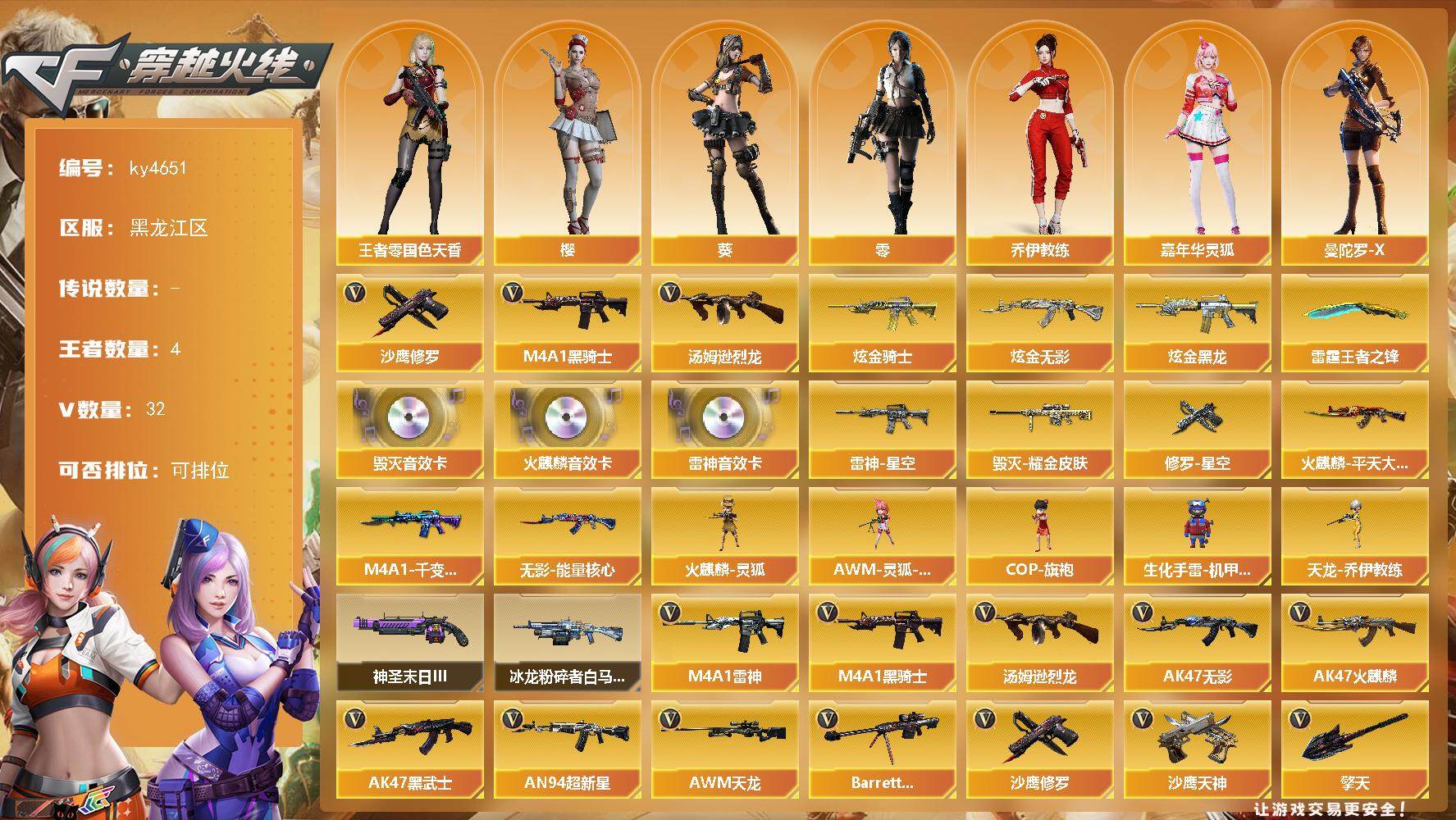 黑龙江区-32V-4王者-3炫金【热门武器】:M4A1-黑骑士,汤姆逊-烈龙