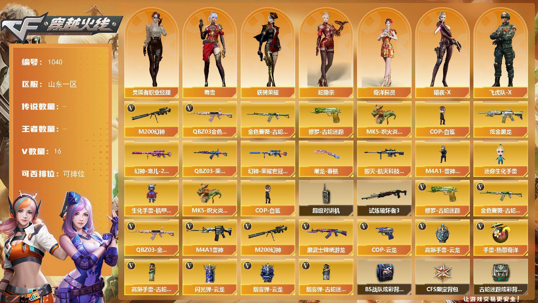 山东一区-16V-0王者-1炫金【热门武器】:QBZ03-金色蔷薇,M200