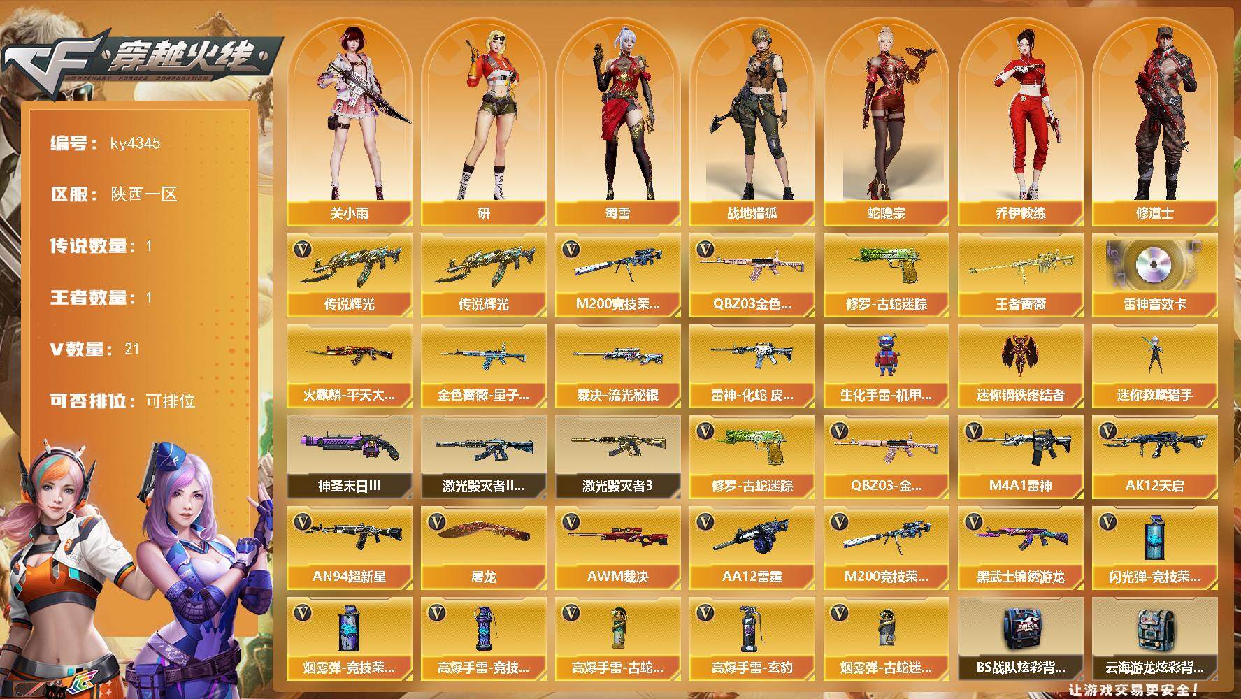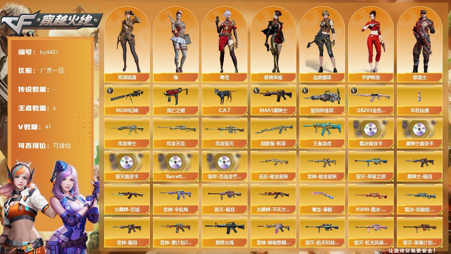 广西一区-41V-6王者-3炫金【传说角色】:传说星骇【热门武器】:QBZ