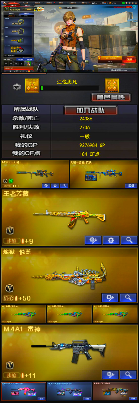江西一区-42V-6王者-4炫金【热门武器】:HK417-朱雀,M200-幻