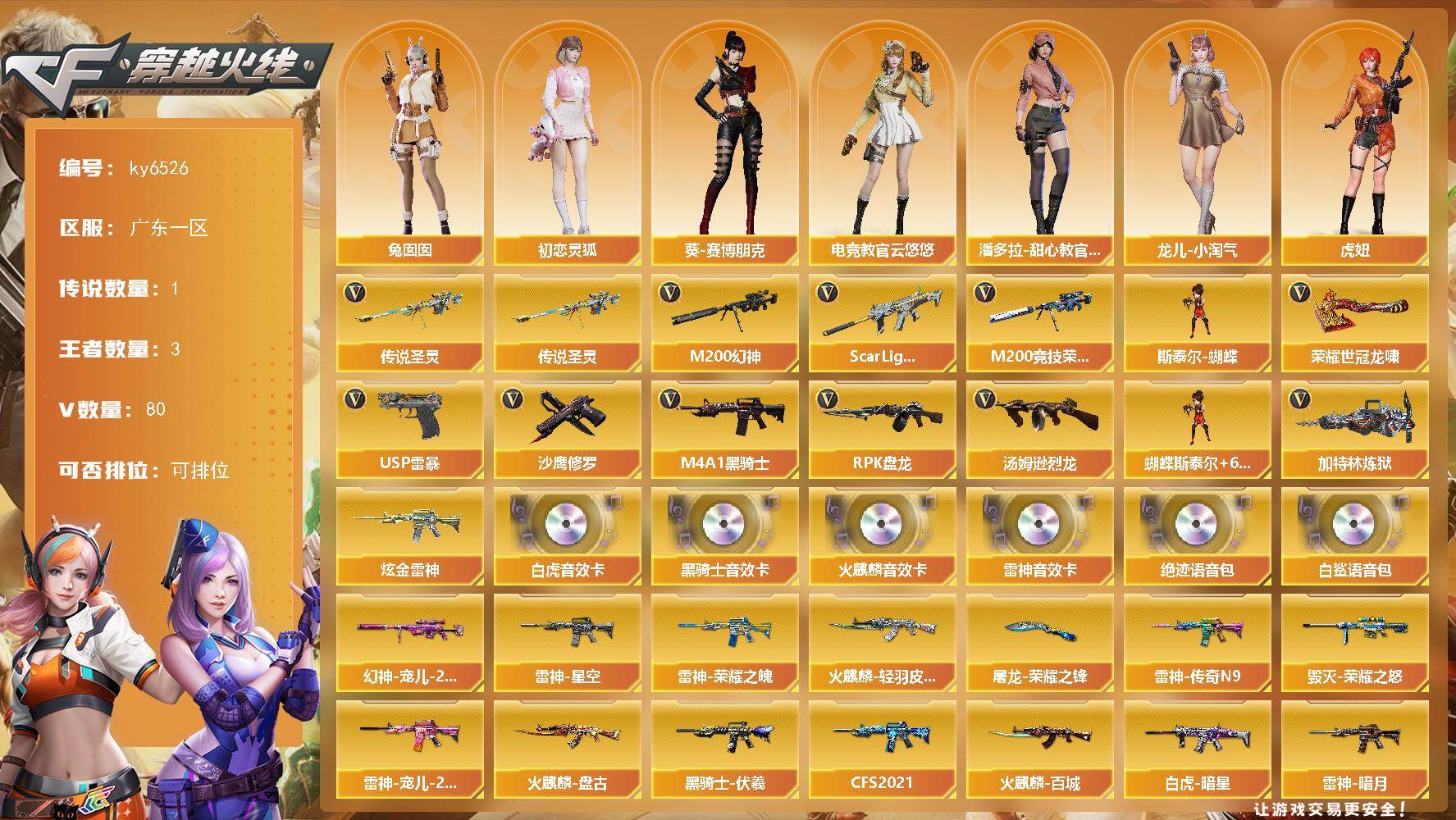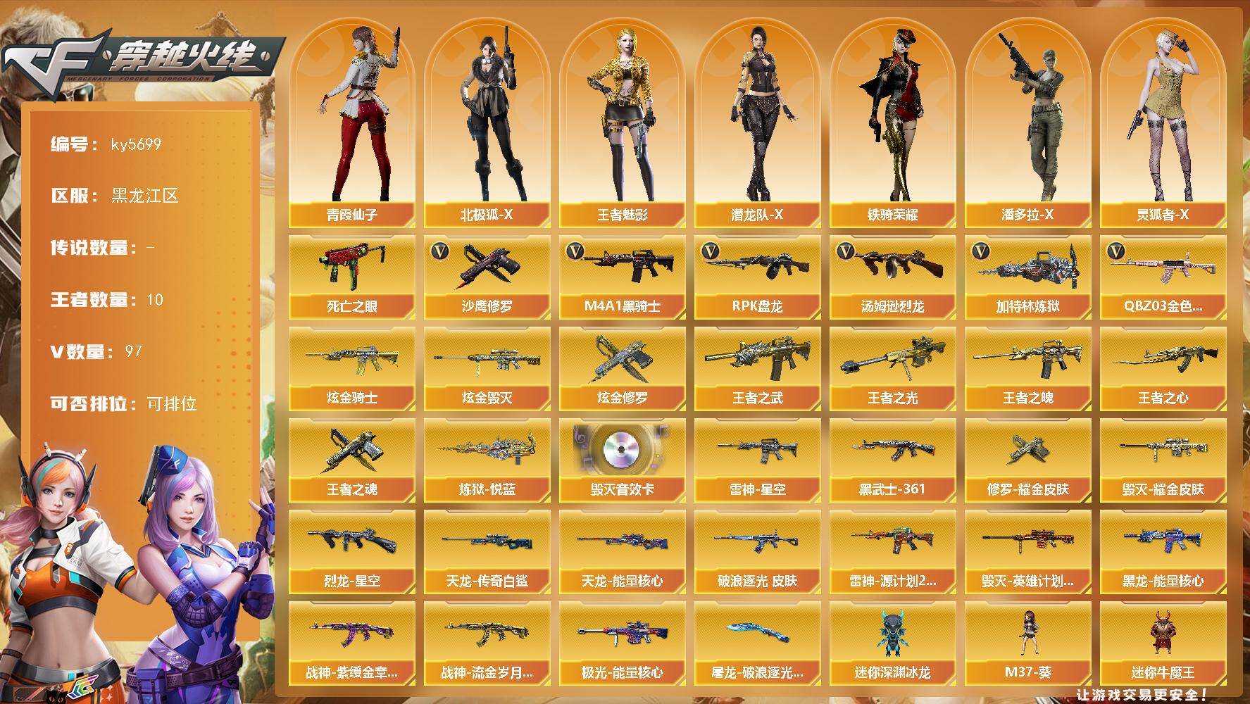 陕西一区-42V-14王者武器数-0炫金武器数【热门武器】:王者幻神,QBZ
