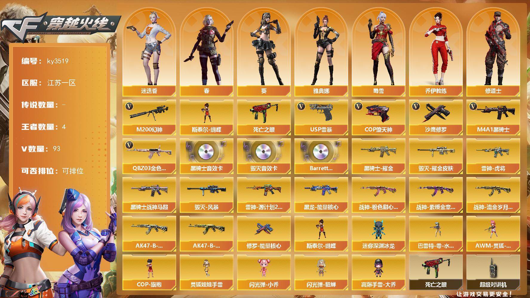 江苏一区-93V-4王者-0炫金 【热门武器】:QBZ03-金色蔷薇,M200