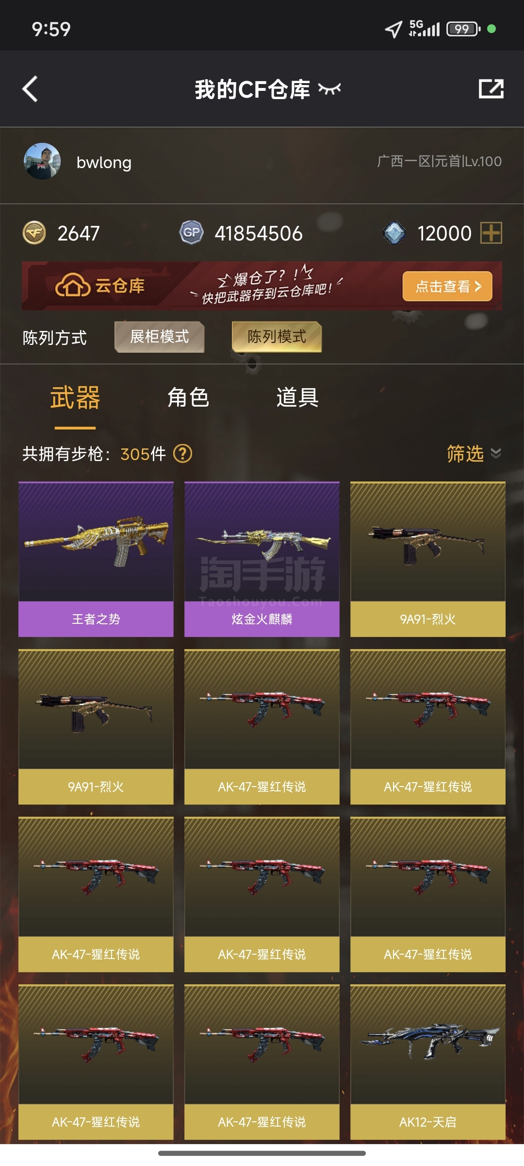 【商品标题】:广西一区-11V-0王者-0炫金 【热门武器】:QBZ03-金色