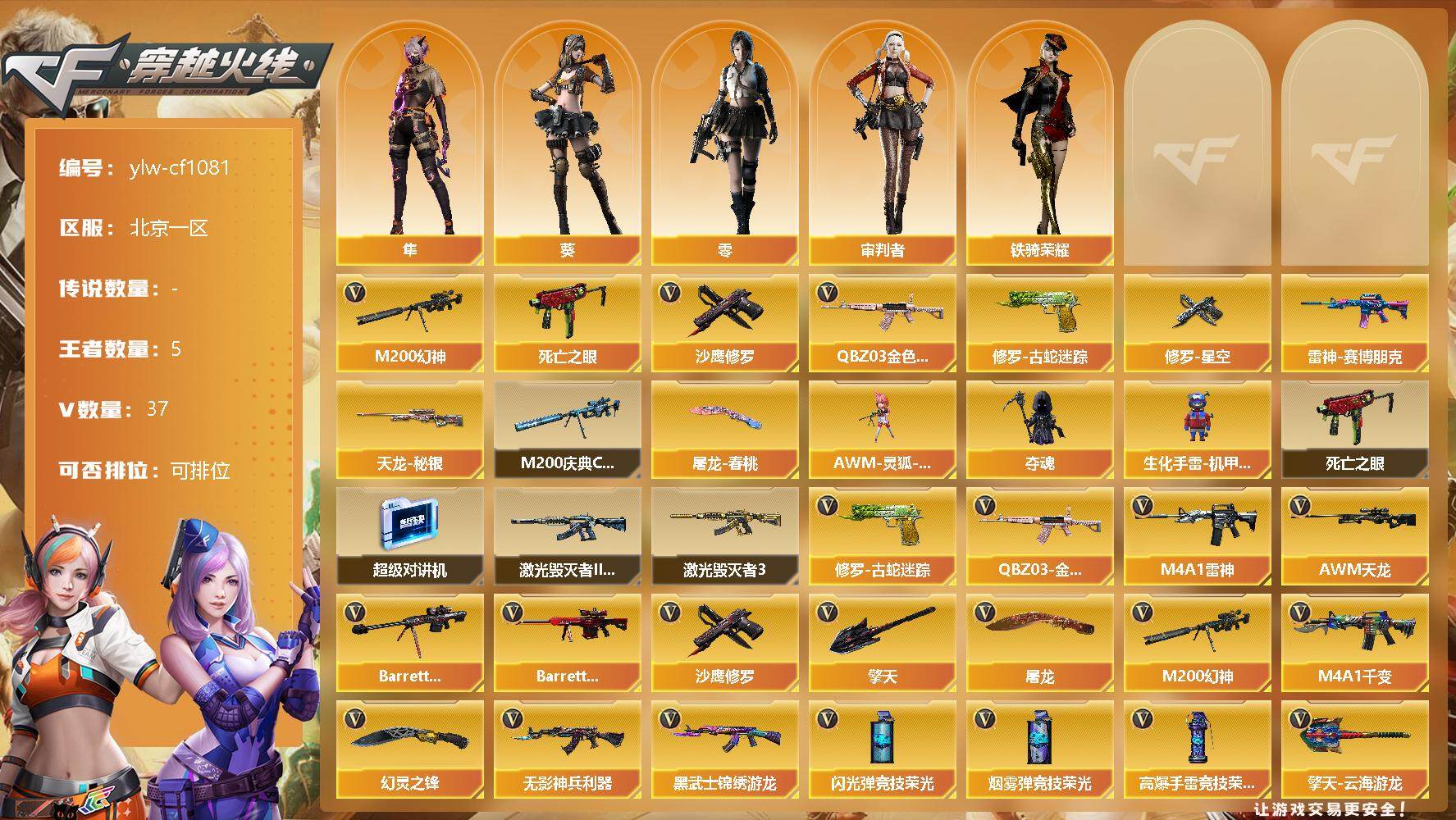 【商品标题】:北京一区-37V-5王者-0炫金 【热门武器】:QBZ03-金色